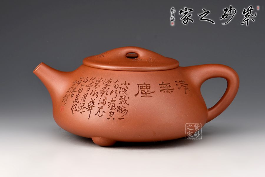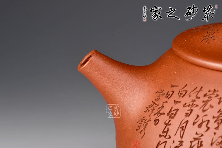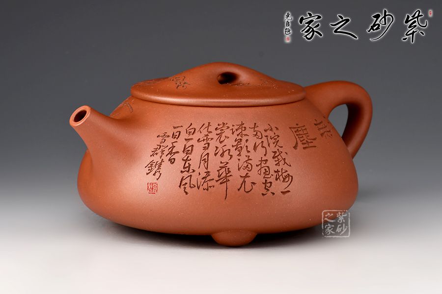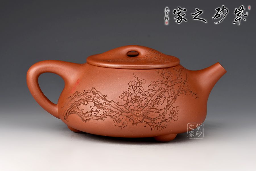 壺身刻繪梅花圖,配以清代著名畫家汪士慎題于《墨梅圖》上的一首小詩:小院栽梅一兩行,畫空疏影滿衣裳…好詩好壺,刻繪更是一絕!力薦!