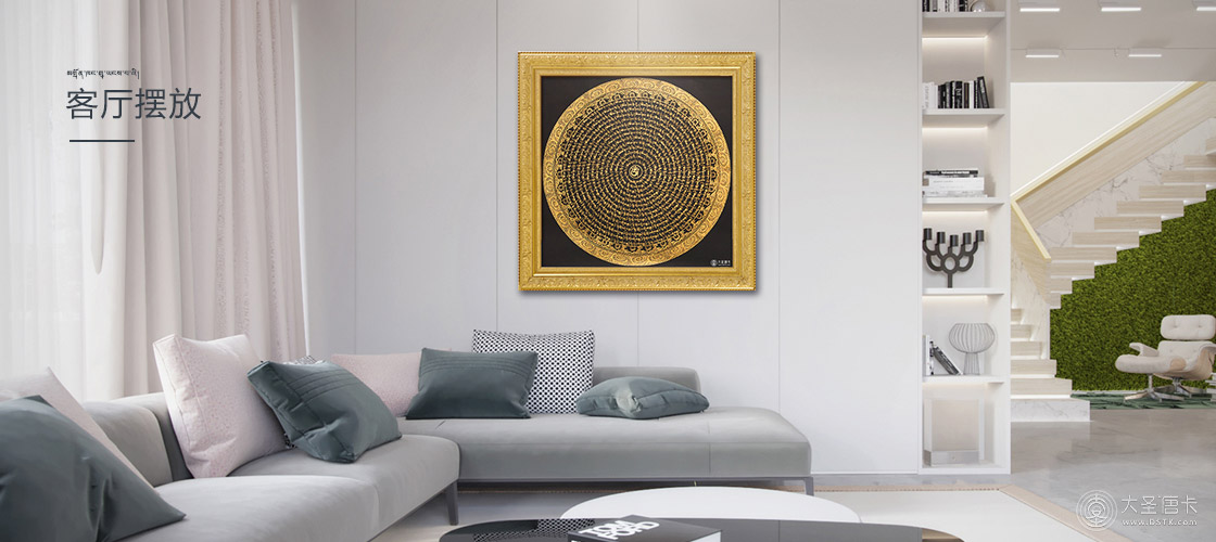 產(chǎn)地:尼泊爾 工藝:黑金 創(chuàng)作年份:2022 題材:壇城 繪制時間:3月 尺寸:*50*50cm 裝裱:鏡片 材質(zhì):藏綿布 使用場地:書房