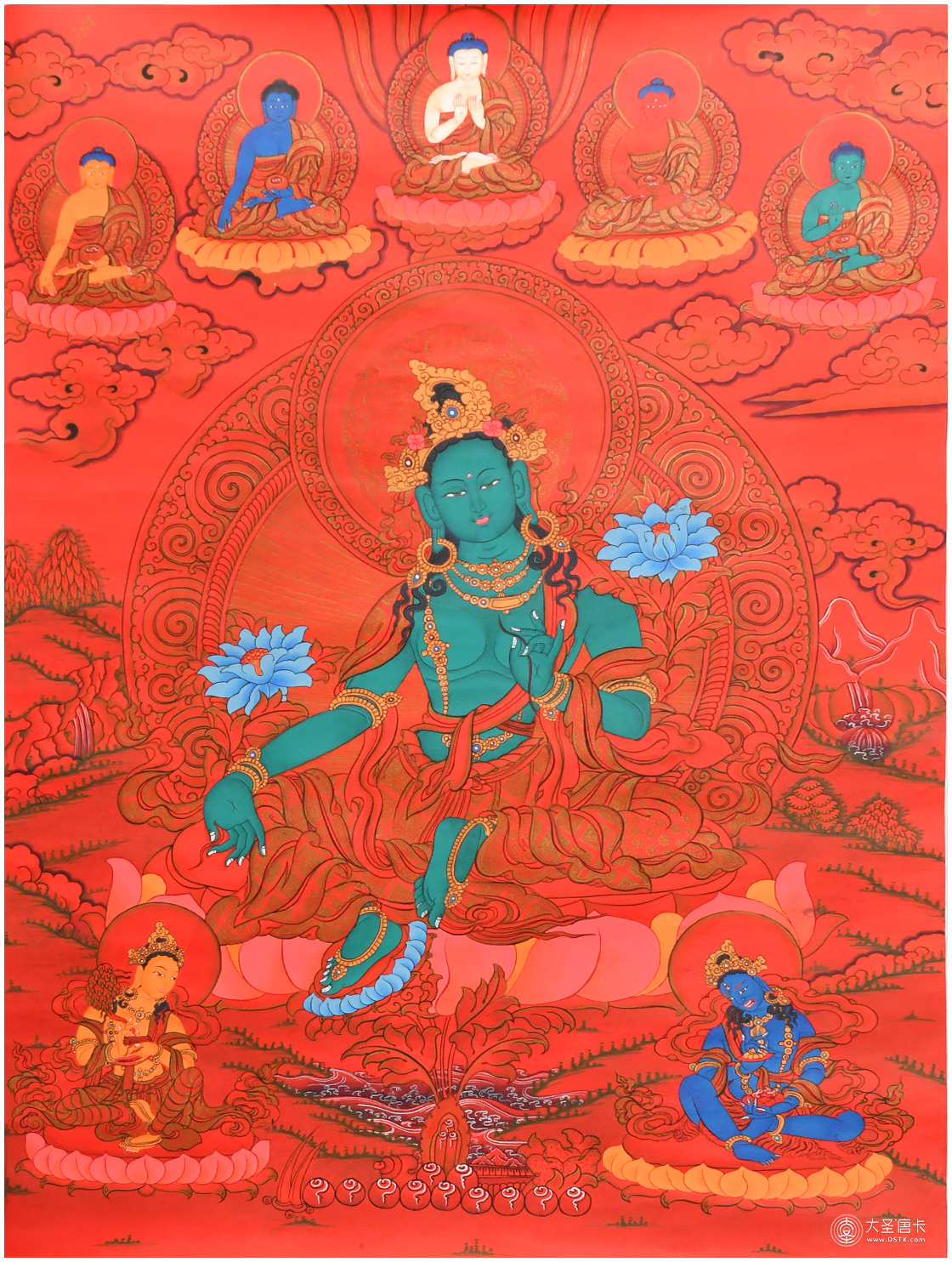 綠度母是二十一度母的總集,觀音菩薩的化身,她能救八種苦難,本尊心咒具足一切息增懷誅之功用,消除一切眾生的煩惱痛苦、滿足一切眾生愿求。