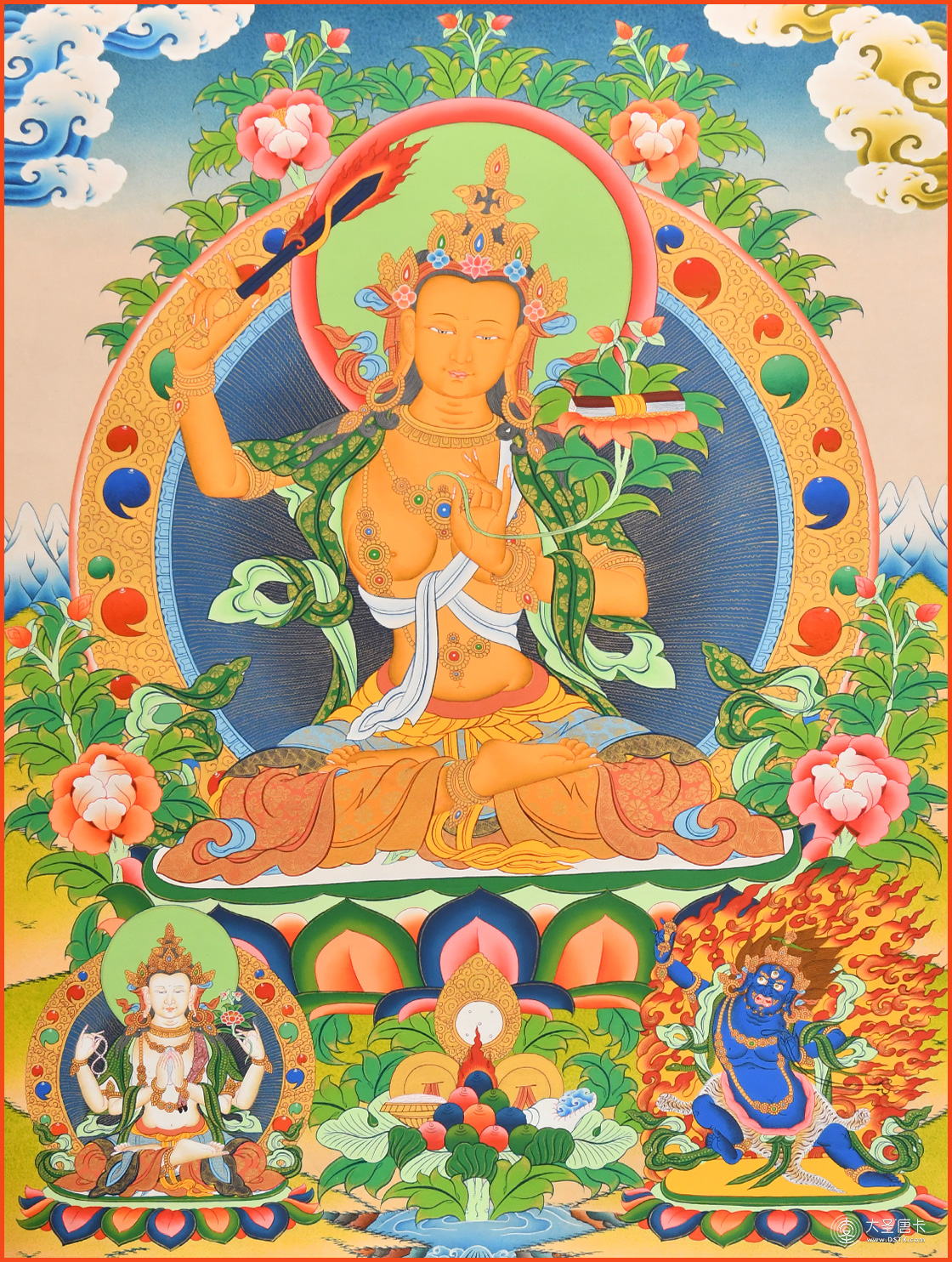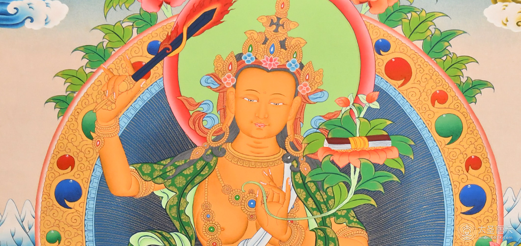 大圣唐卡商城 >> 作品詳情 >> 彩唐文殊菩薩75*52cm