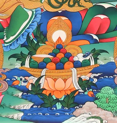 2、不能暴曬,因為唐卡是畫在棉布上的,如果暴曬的話使棉布膨脹把畫面上的顏色拉開出現裂縫,且盡量將唐卡放在恒溫處。