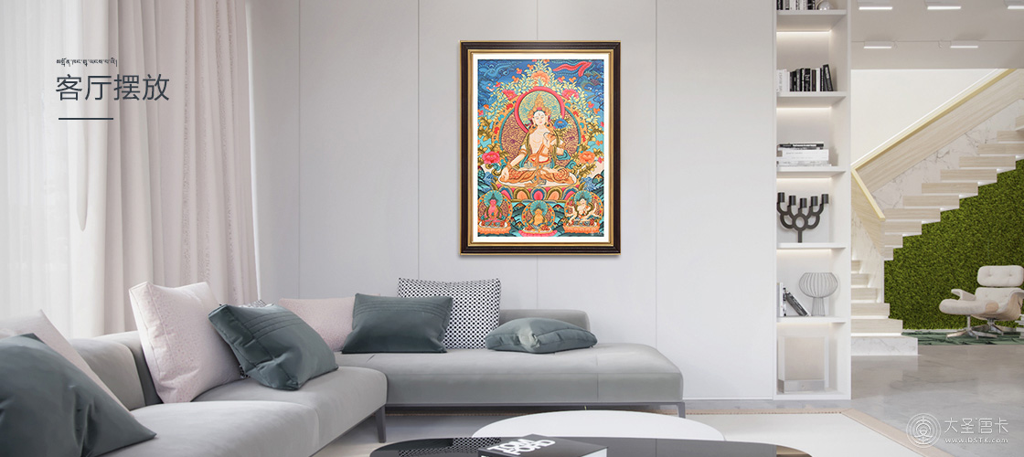 2、不能暴曬,因為唐卡是畫在棉布上的,如果暴曬的話使棉布膨脹把畫面上的顏色拉開出現裂縫,且盡量將唐卡放在恒溫處。