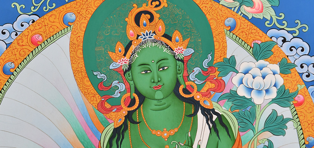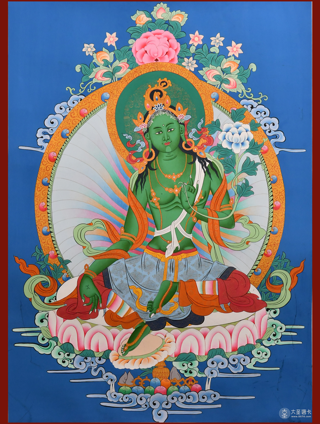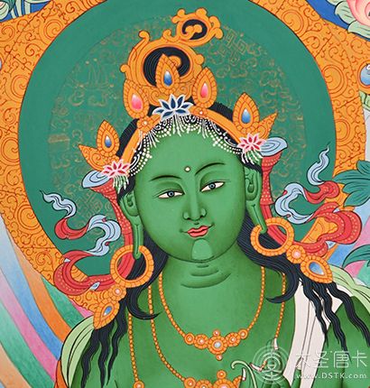 綠度母是二十一度母的總集,她能救八種苦難,本尊心咒具足一切息增懷誅之功用,消除一切眾生的煩惱痛苦、滿足一切眾生愿求。