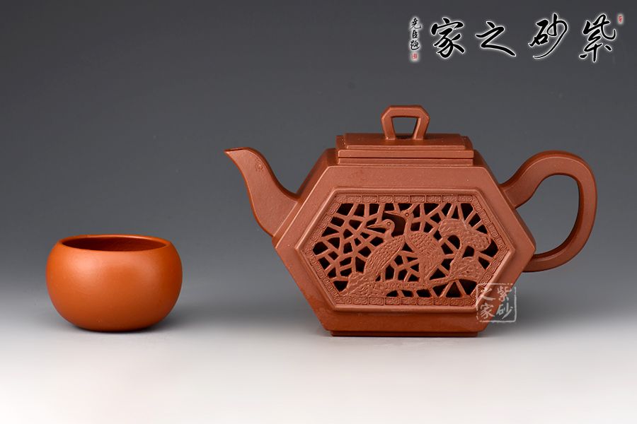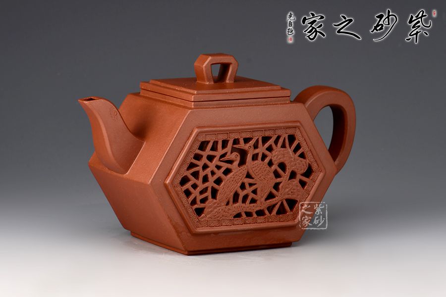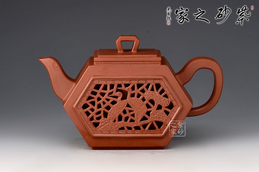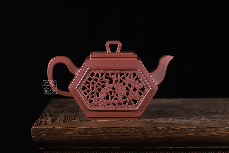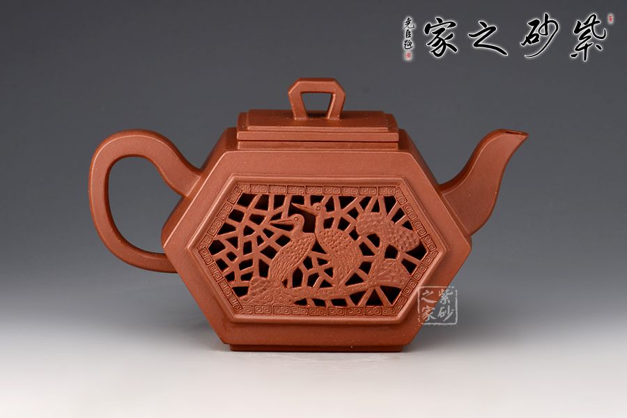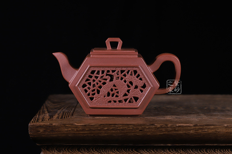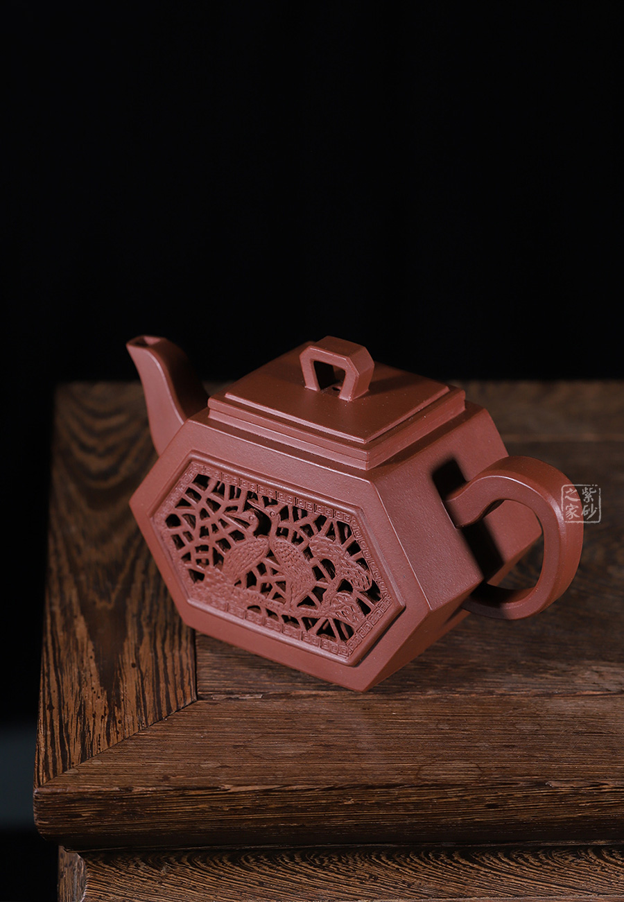 壺身雙面鏤空裝飾,如江南小舍松鶴疏窗,
