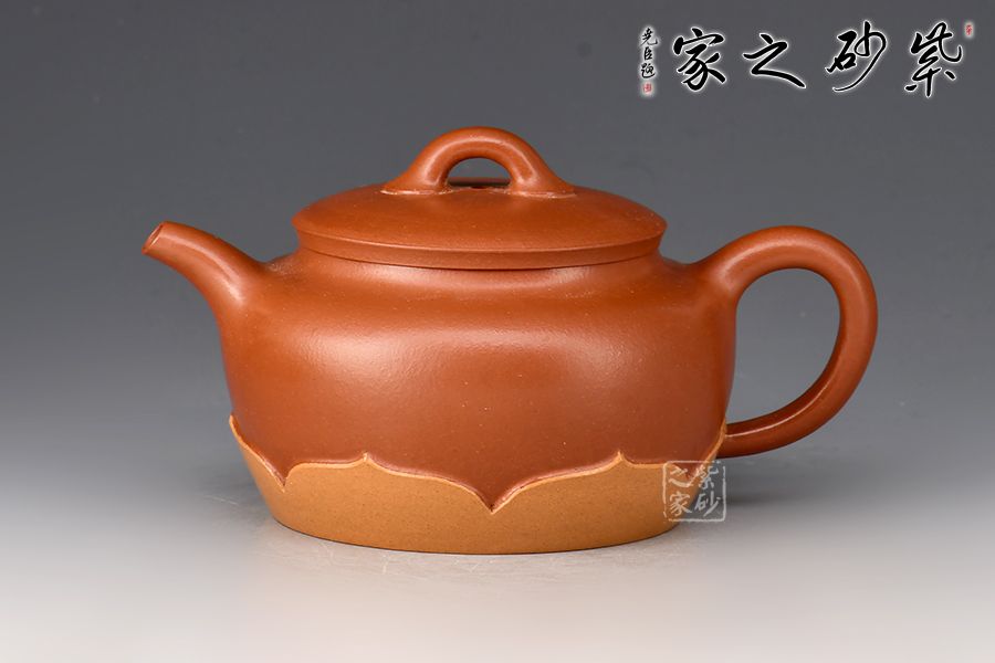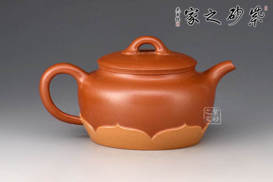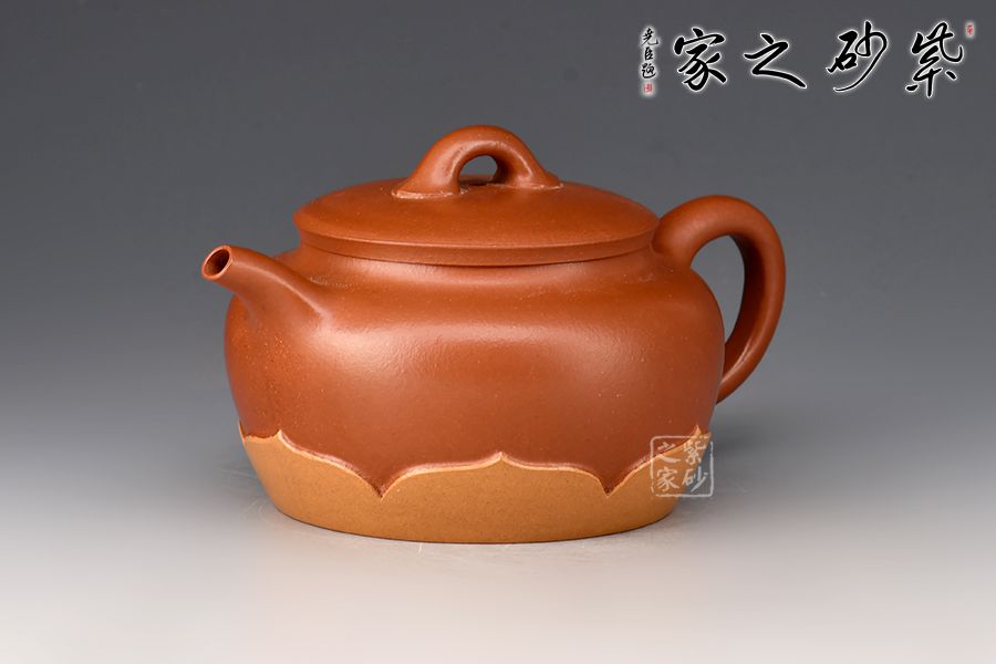 此作以雙色泥塑蓮花自壺底部出