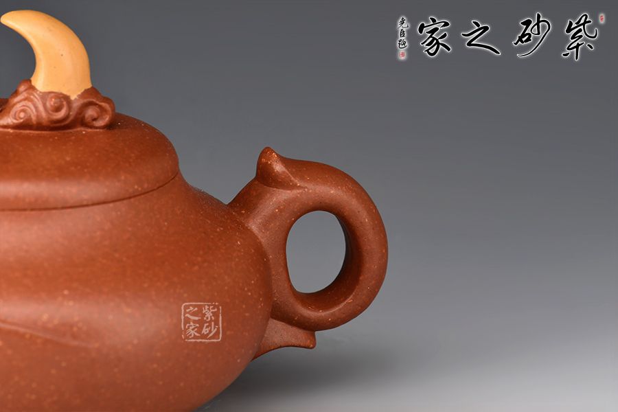 泥性:原礦因含緞泥、紅泥、紫泥等諸多共生礦,陶之后,于深沉之“橙紅色”底上,滿佈五彩斑斕的粗細、深淺之紅、黃星斑點。