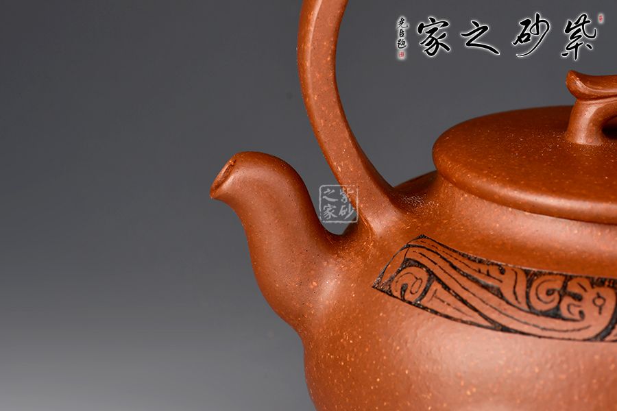 特點:原礦因含緞泥、紅泥、紫泥等諸多共生礦,陶之后,于深沉之“橙紅色”底上,滿佈五彩斑斕的粗細(xì)、深淺之紅、黃星斑點。
