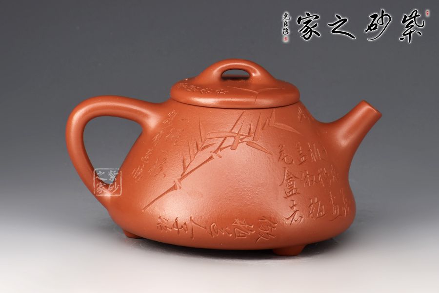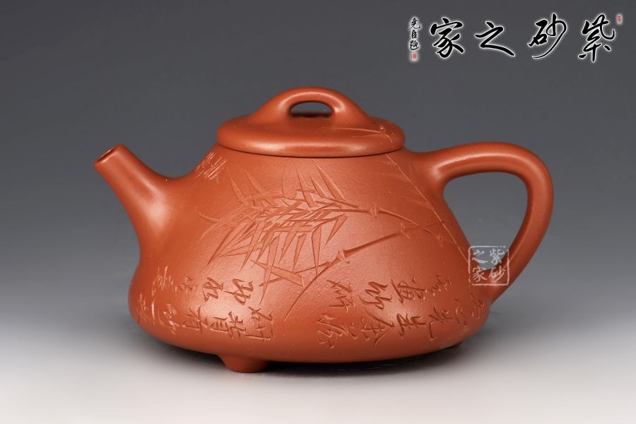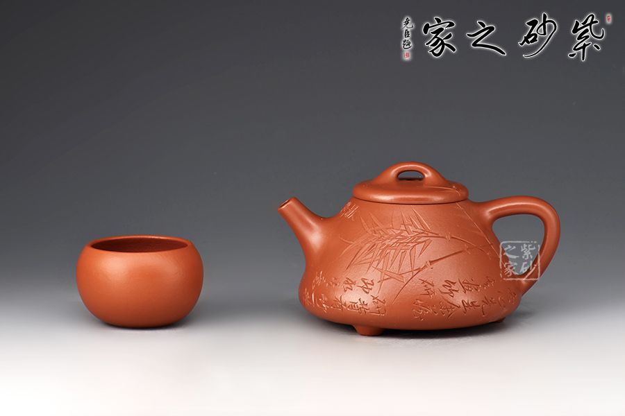 壺身陶刻靈感源自鄭板橋畫竹,刻繪竹林之貌,畫竹之意境感油然而生。整壺將傳統(tǒng)與現(xiàn)代巧妙結(jié)合,詮釋“子冶畫竹”之韻,表達(dá)超脫淡泊的情懷,此壺融書畫、陶刻于一體,是一把使用、賞玩皆宜的文人壺作品,值得收藏。