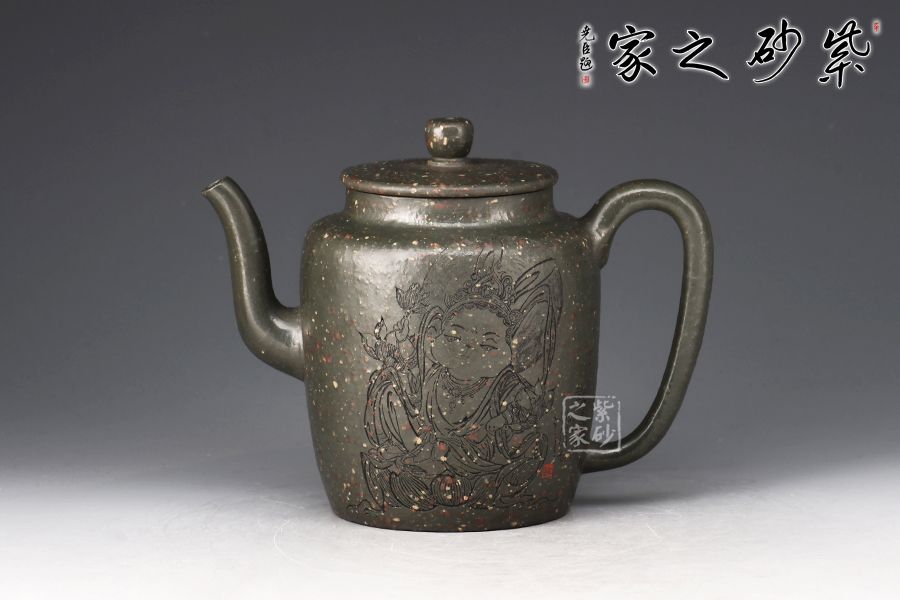 簡介:綠泥,玩者暱稱“綠豆砂泥”,古云“豆碧色”,泥色酷似綠豆皮,澹草綠。帶本山綠泥細黃砂,清麗出眾、雅俗共賞。所制壺品質感樸拙,砂質細膩而富有顆粒美感。壺品色澤米黃泛青,泡養(yǎng)后逐步轉為溫潤的亮色,包漿感好而易于泡養(yǎng),發(fā)幽然青光。產于黃龍山礦脈,是紫砂泥中的夾脂,故有“泥中泥”之稱。產量不多,泥質較嫩,耐火力也比紫泥為低。原礦色澤為青灰泛綠,成片巖狀或粉末狀,以手拿之即會沾染上原礦粉末顏色。也常作為胎身外面的粉料或涂料,使紫砂陶器皿的顏色更為多彩。
