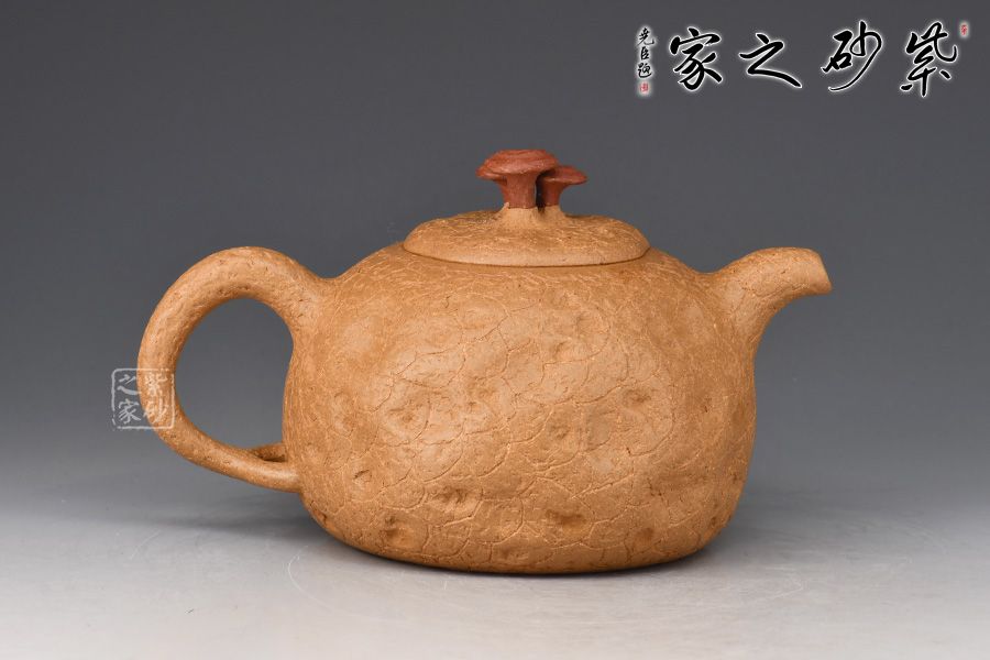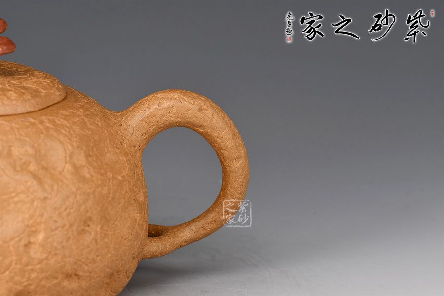 泥性:感甜嫩綿密,質(zhì)堅(jiān)而溫潤,呈近田黃色調(diào),為江蘇宜興趙莊山系朱泥礦~黃石黃之共生礦,經(jīng)挑揀練製而成,因含鐵量只達(dá)6%左右,致陶之后呈“金田黃色”。