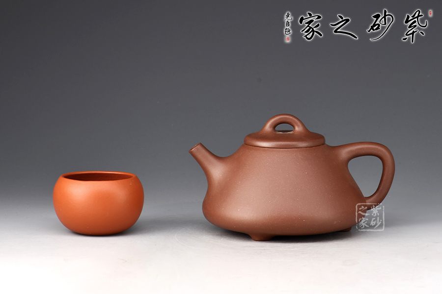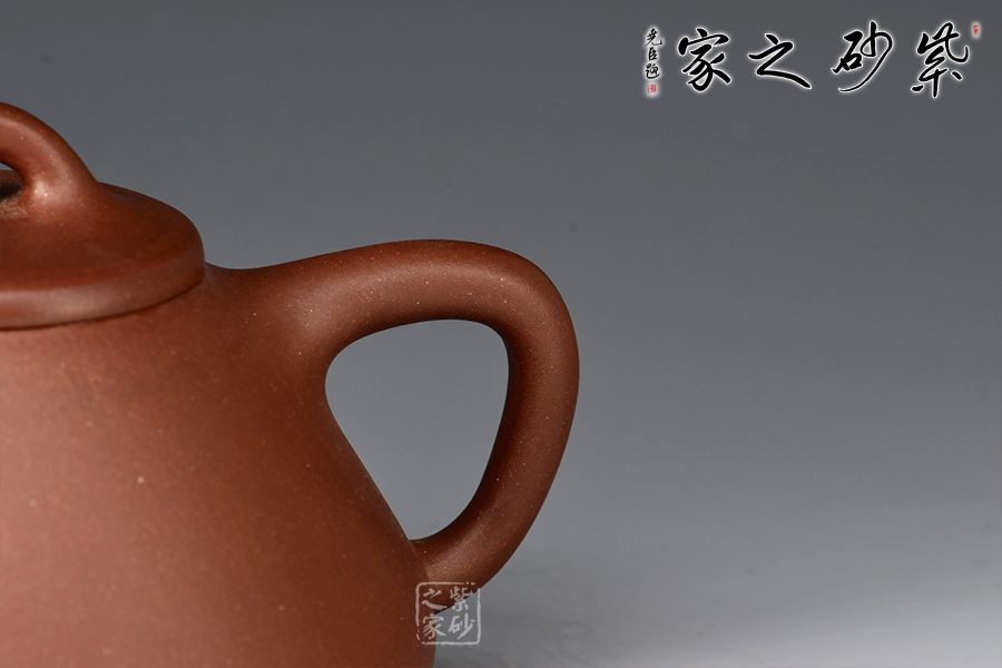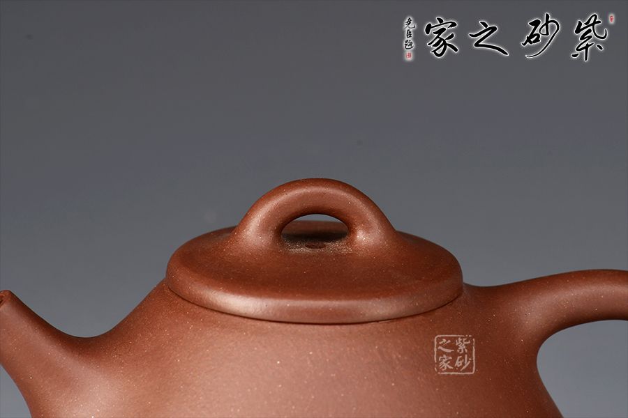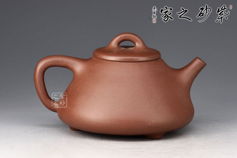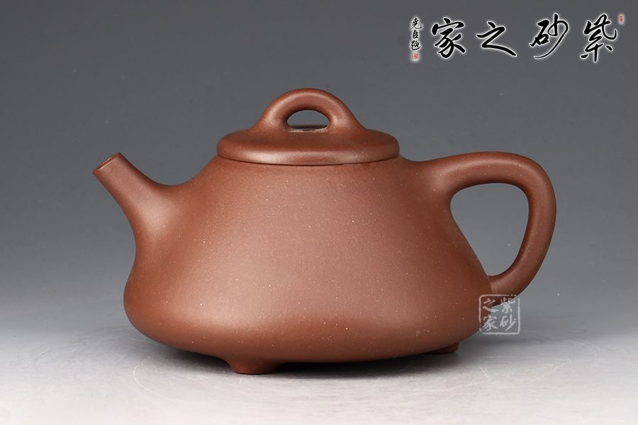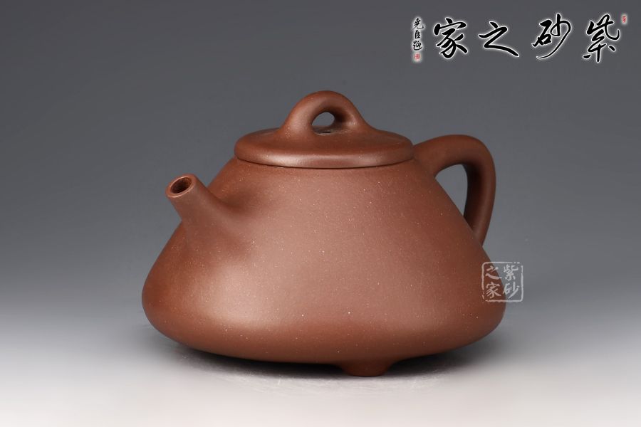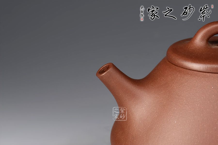 此壺為其選用中糟青,全手工精制而成,泥色溫潤雅致,襯托石瓢古雅氣韻。整體造型簡約大方,橋鈕、直流、倒三角把比例和諧,相互映襯。整器精工細作,形體端秀,骨力勁挺,出水爽利,且上手舒適,極易泡養(yǎng),是一把頗為實用的殺茶利器。