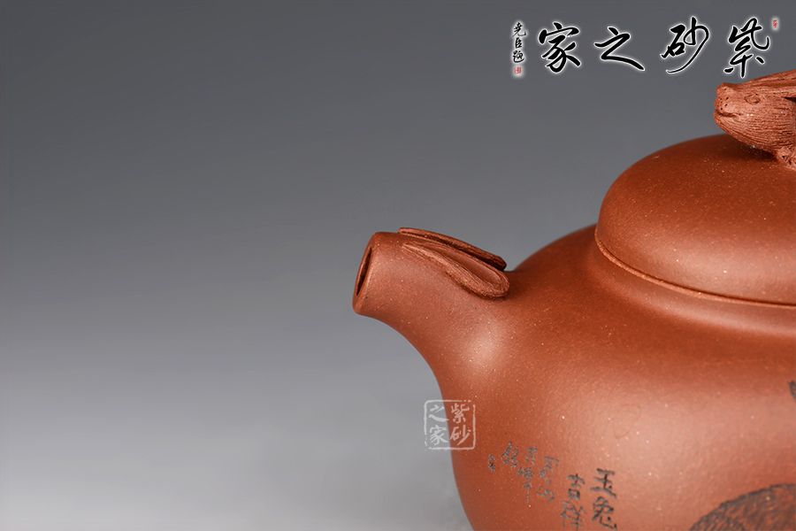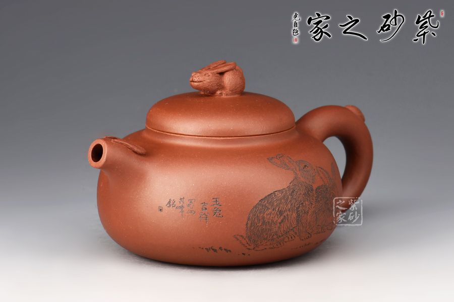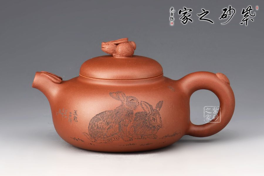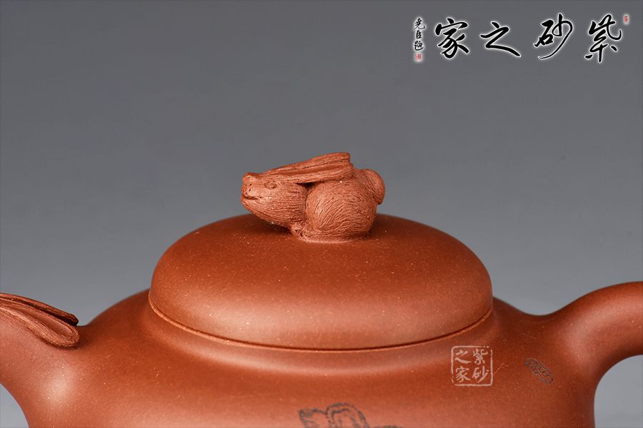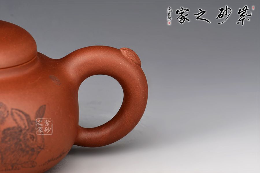 兔年用兔壺,瑞兔呈祥。整壺精選原礦紫泥全手工制作而成,泥色古樸,好泡養(yǎng)。壺身扁圓,線條流暢。壺鈕為玉兔造型切合主題,又突出主題,而壺把形如兔尾,壺嘴微微上翹如兔尾,遇見玉兔是呈現(xiàn)吉祥的祥瑞之兆,如此情韻結(jié)合的壺型用于事茶觀賞可謂佳品。