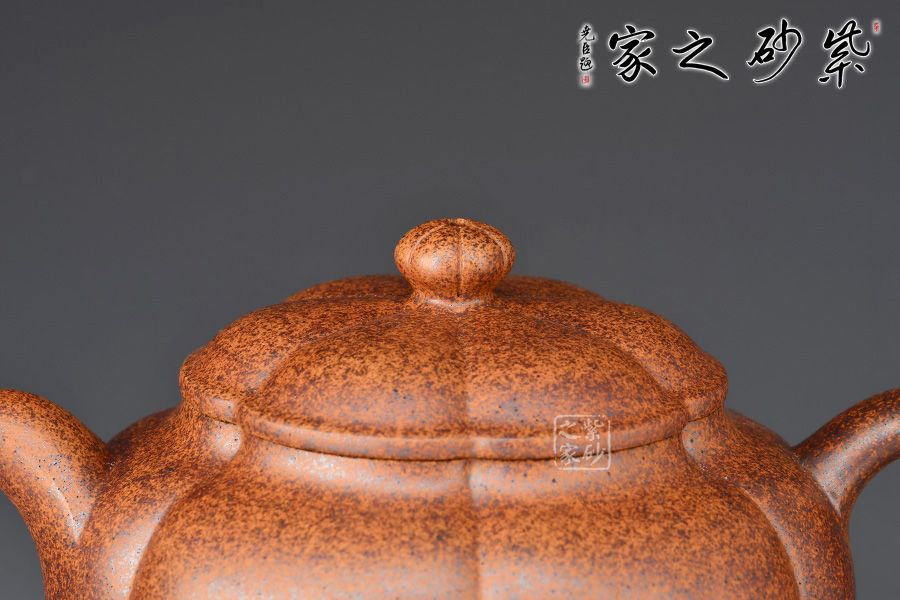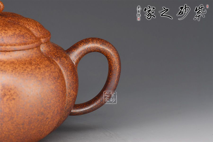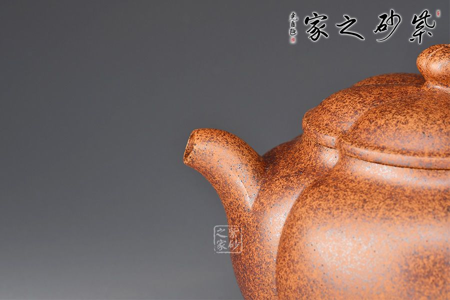 這款柿圓壺形態(tài)親近自然,做工精美無(wú)瑕,是一款非常難得作品。通身上下的形狀就是一枚柿子,紋理之間形象生動(dòng)。滴鈕小巧可人,一彎嘴出水爽利,耳形外觀粗細(xì)均勻,拿捏舒適。以此壺品茗,附帶可以感受到柿子的圓滑美好,古樸內(nèi)斂,當(dāng)真有趣味。