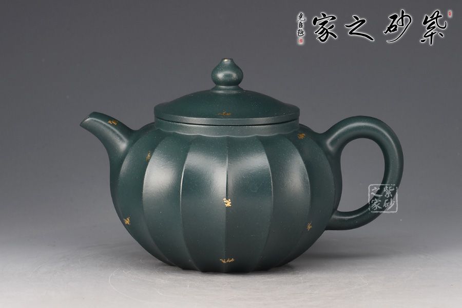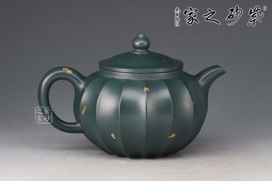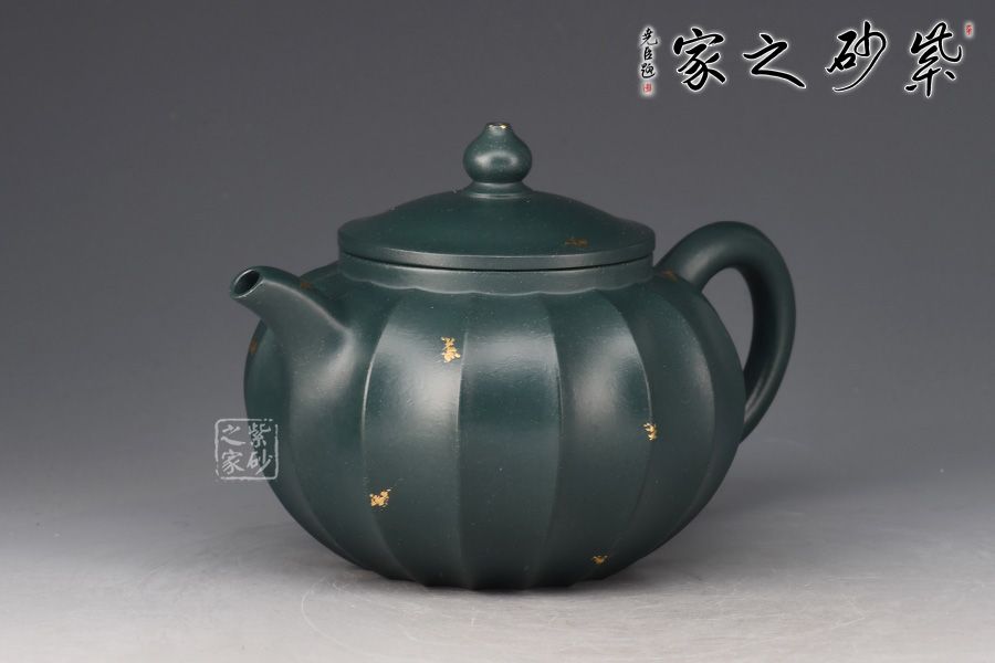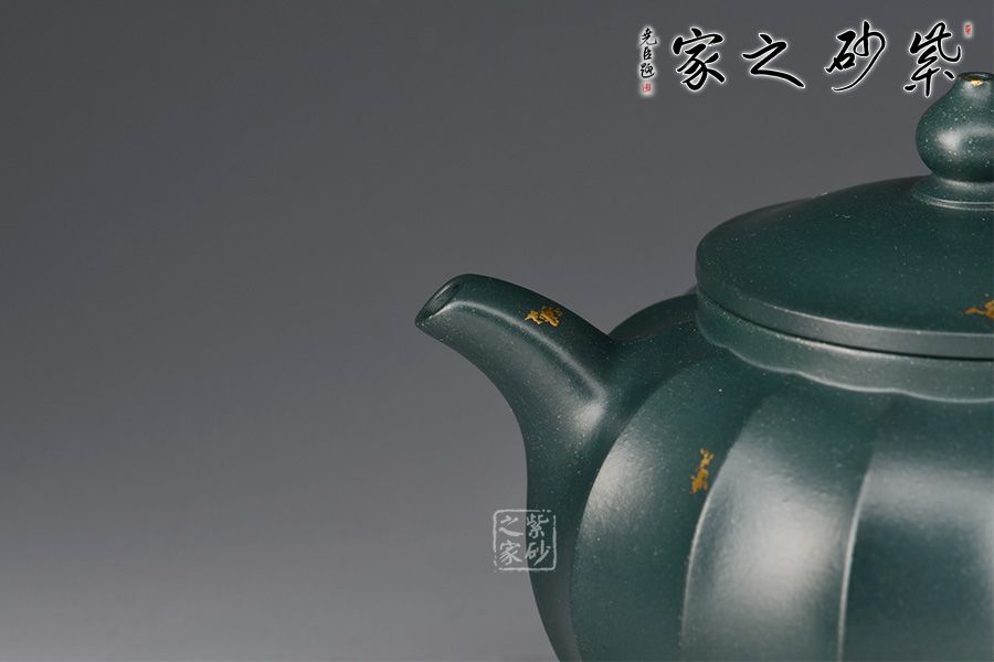 此壺為經典筋紋器,器型漂亮,端莊大氣。 壺身被筋紋等分,錯落有致,線條流暢,壺身戧金,富貴華麗。彎流與耳把挺拔向上,渾然一體,線條柔和秀雅,做工細致。蘇門答臘青制作而成,胎質細膩,壺面光潤,非常有質感,此乃把玩之佳品,值得雅賞珍藏。