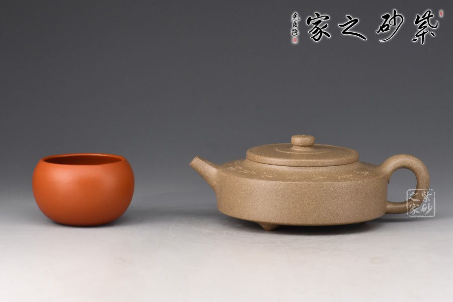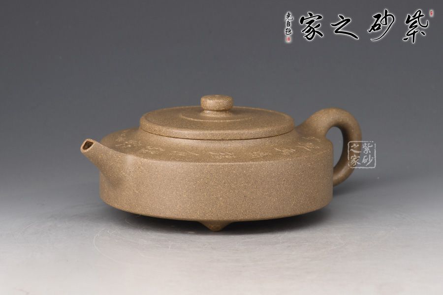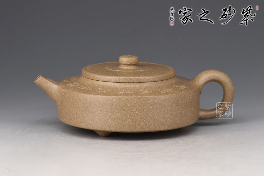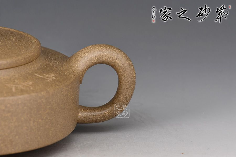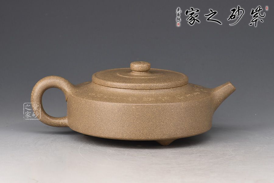 此周盤壺采用青段泥,全手工精製而成,泥色略顯清潤,手感舒適。