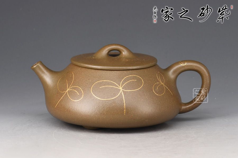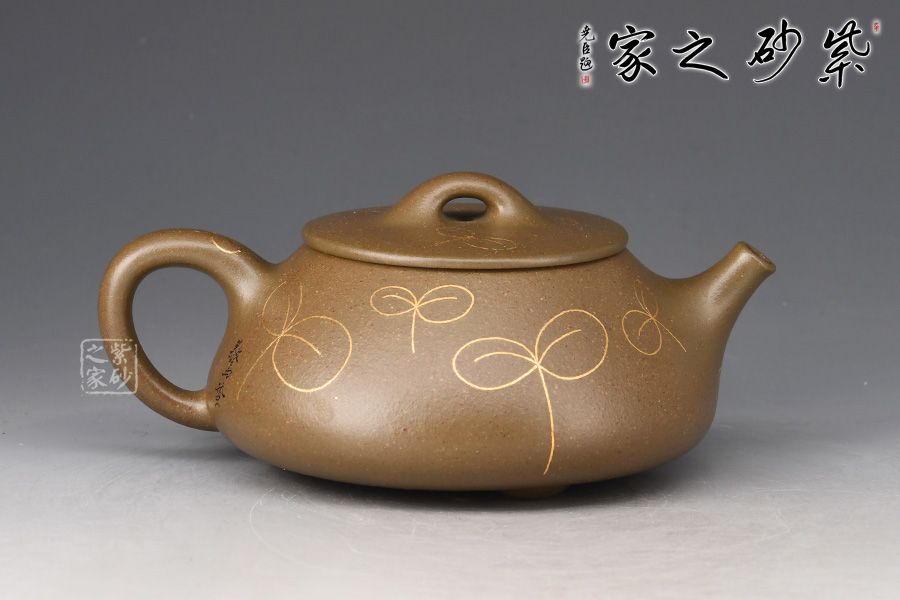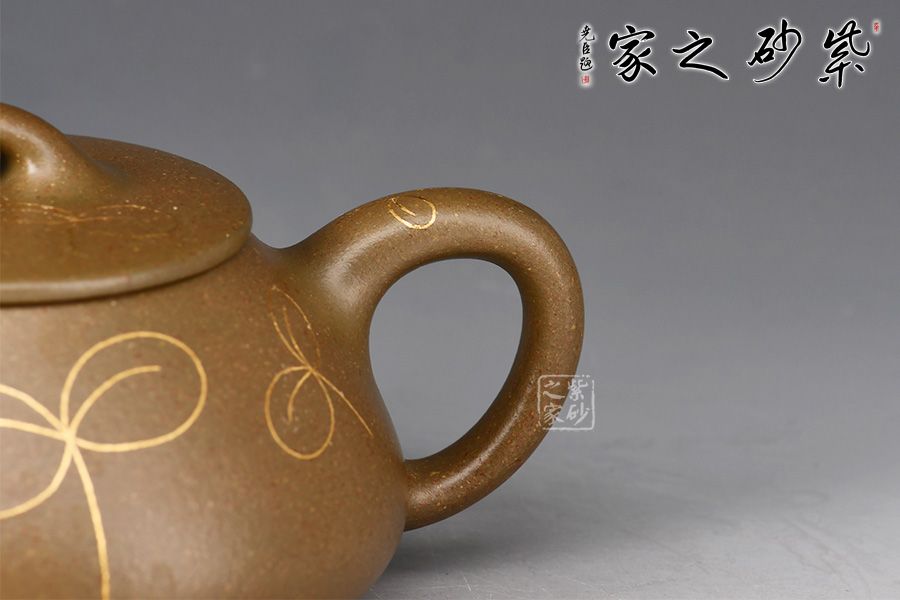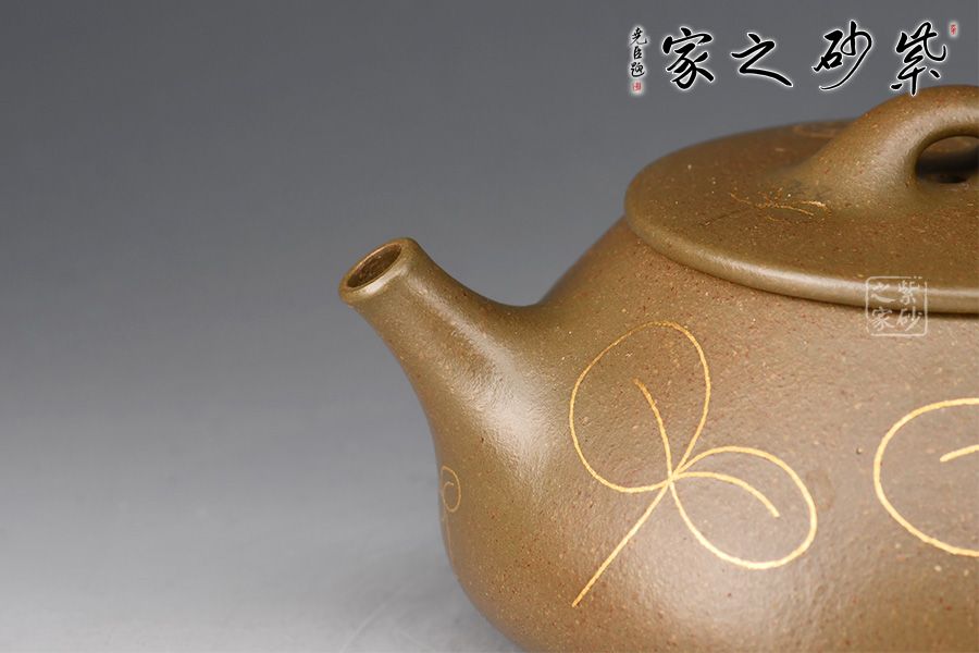 驚蟄時節(jié),春氣萌動,萬物萌生,壺面以金絲嫩葉點綴,充滿勃勃生機。整器比例精湛,骨肉亭勻,氣韻充沛,240cc黃金容量,是一把非常實用的品茶利器。