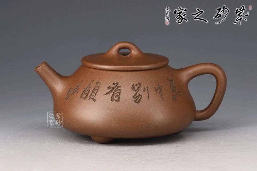 此壺取經(jīng)典石瓢之型,精選八十年代一廠拼紫泥,全手工精心制作,泥料稀有,色澤溫潤古樸。造型簡約大方,金字塔形壺身,平蓋投茶便利,橋鈕與之渾然一體。直流簡而有力,出水順爽,壺把呈倒三角勢,與壺身互補,各部件比例和諧,相得益彰。好料精工,高性價比,泡茶優(yōu)選。