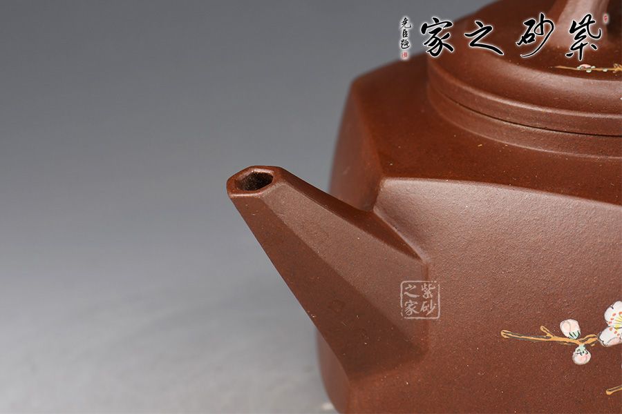 梅開六方壺精選原礦紫泥全手工制作而成,泥色古樸,好泡養(yǎng)。此壺端方規(guī)整,六面鑲接成型,塊面挺括,折角分明。六方直嘴出水爽利,飛把方便拿捏。壓蓋設(shè)計,嚴絲合縫,橋鈕簡潔大方,挺拔壺身。