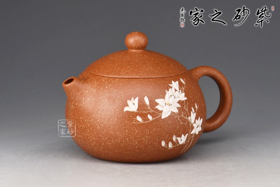 泥性:原礦因含緞泥、紅泥、紫泥等諸多共生礦,陶之后,于深沉之“橙紅色”底上,滿佈五彩斑斕的粗細(xì)、深淺之紅、黃星斑點(diǎn)。
