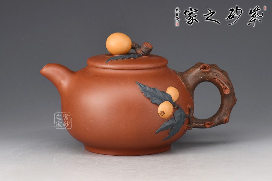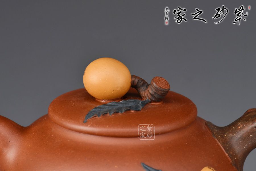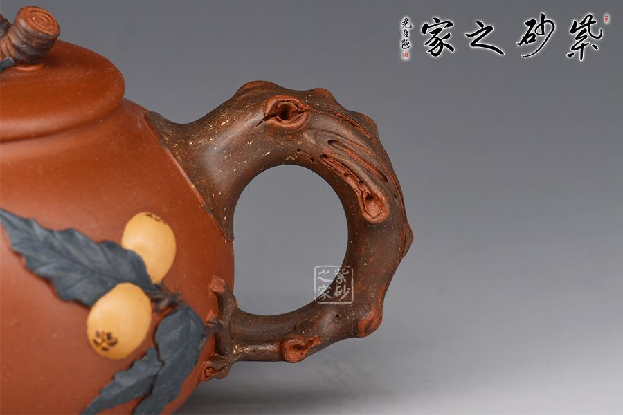 碩果壺精選原礦清水泥全手工制作而成,泥質(zhì)溫潤細膩,好泡養(yǎng)。施藝技法高超,飽含生活氣息。出神入化,惟妙惟肖。一彎嘴出水爽利,壺把以枇杷枝干構(gòu)成,虬枝蒼勁。壺身塑以葉片,莖蔓,果實在其上,鮮活靈動,舒展自如;平蓋,嚴(yán)絲合縫,壺鈕以一顆圓潤光澤的枇杷做成,靈巧脫俗,展現(xiàn)出樸實的自然美。該壺造型比例協(xié)調(diào),壺把,鈕,嘴搭配合理,制作工藝嚴(yán)謹(jǐn)。