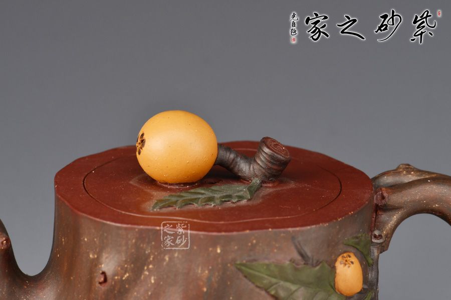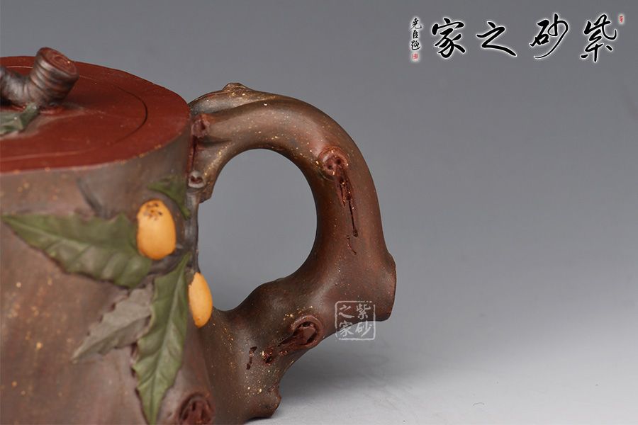 充分運(yùn)用紫砂材質(zhì)豐富的色彩及傳統(tǒng)工藝中花貨的裝飾手法,使作品色彩自然豐富,布局美觀合理。