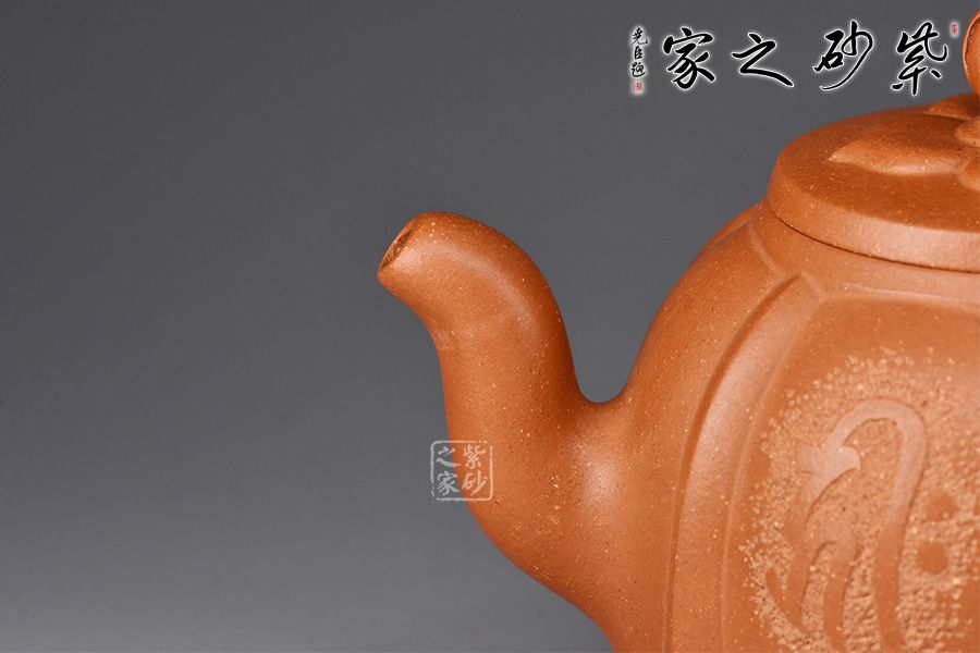 泥性:原礦因含緞泥、紅泥、紫泥等諸多共生礦,陶之后,于深沉之“橙紅色”底上,滿佈五彩斑斕的粗細、深淺之紅、黃星斑點。