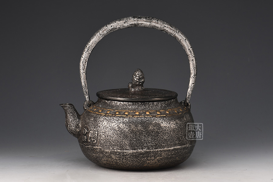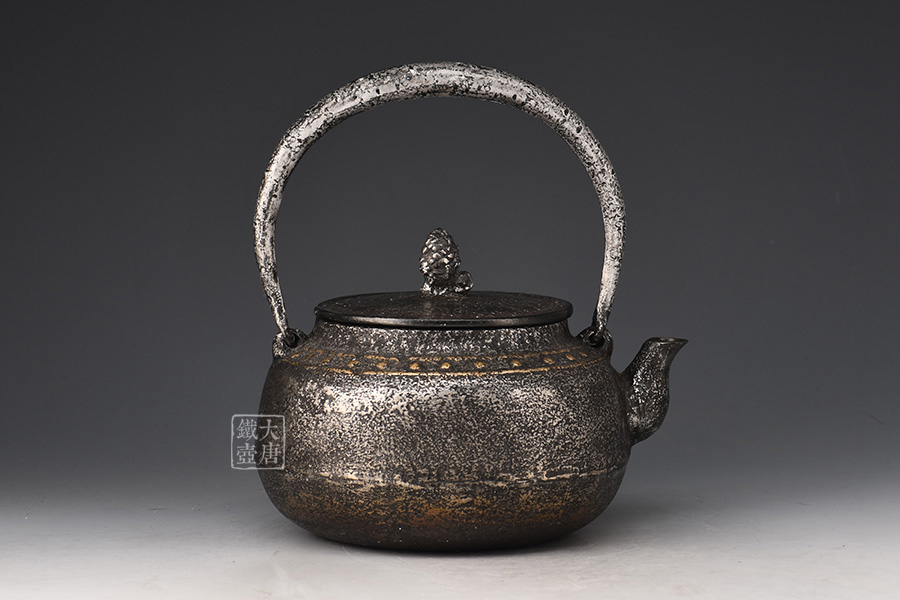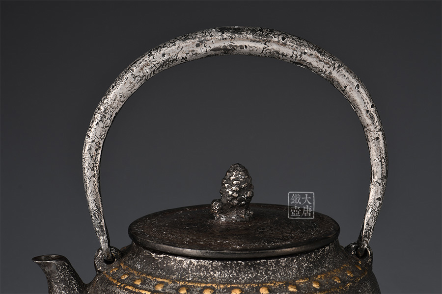 荒井工房的鐵瓶除了在鑄造工藝上有嚴(yán)格的規(guī)范和體系,在鐵瓶裝飾技術(shù)上也頗有建樹(shù)。除了傳統(tǒng)的印刻技術(shù)外,荒井工房還掌握了非常出色的金銀鑲嵌技藝,尤其以大片的鏨刻銀片最為出眾,這在山形當(dāng)?shù)靥每谥歇?dú)樹(shù)一幟。