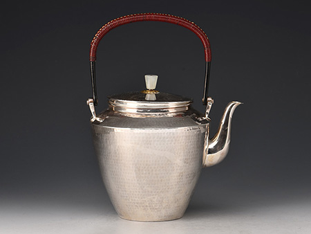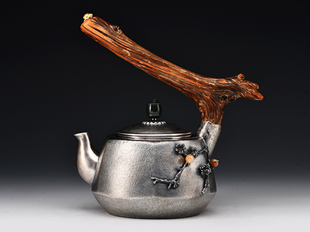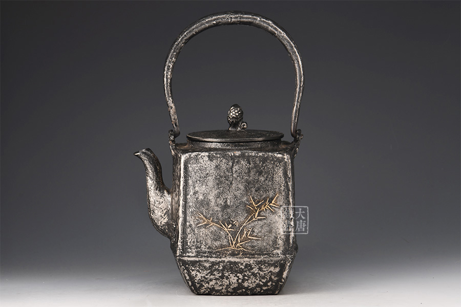 荒井工房的鐵瓶除了在鑄造工藝上有嚴(yán)格的規(guī)范和體系,在鐵瓶裝飾技術(shù)上也頗有建樹(shù)。除了傳統(tǒng)的印刻技術(shù)外,荒井工房還掌握了非常出色的金銀鑲嵌技藝,尤其以大片的鏨刻銀片最為出眾,這在山形當(dāng)?shù)靥每谥歇?dú)樹(shù)一幟。