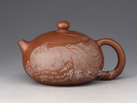 泥性:泥料內(nèi)所含顆粒較大結(jié)構(gòu)疏松器身明顯成雙氣孔結(jié)構(gòu),空氣對(duì)流順暢;日久使用,漸露鋒芒,養(yǎng)成變化甚大為養(yǎng)壺之最佳器材。泡茶好喝,贊不絕口!早期泥料調(diào)配跟早期窯爐所升溫度較低溫,在一般緞泥產(chǎn)品會(huì)“吐黑”;近期來所用窯爐為高溫窯,所燒成之緞泥壺,可輕易提升至所須溫度,而真正達(dá)到較高的結(jié)晶,絕不吐黑。