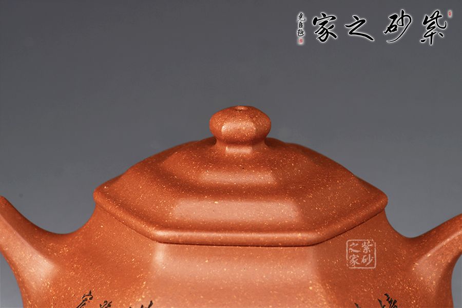 壺身六面鑲接成型,點線面清晰明確,輪廓線條分明,制壺手法干凈利落,成壺明快挺秀。彎流壺嘴,出水順暢;耳形壺彎曲有致。壺身與壺蓋緊密相連,口蓋轉(zhuǎn)動皆吻合緊密。