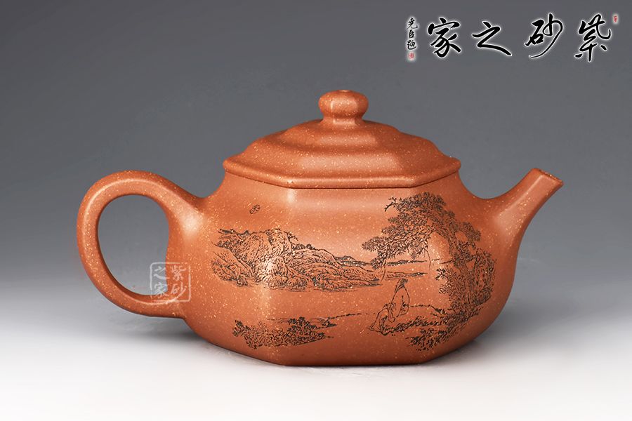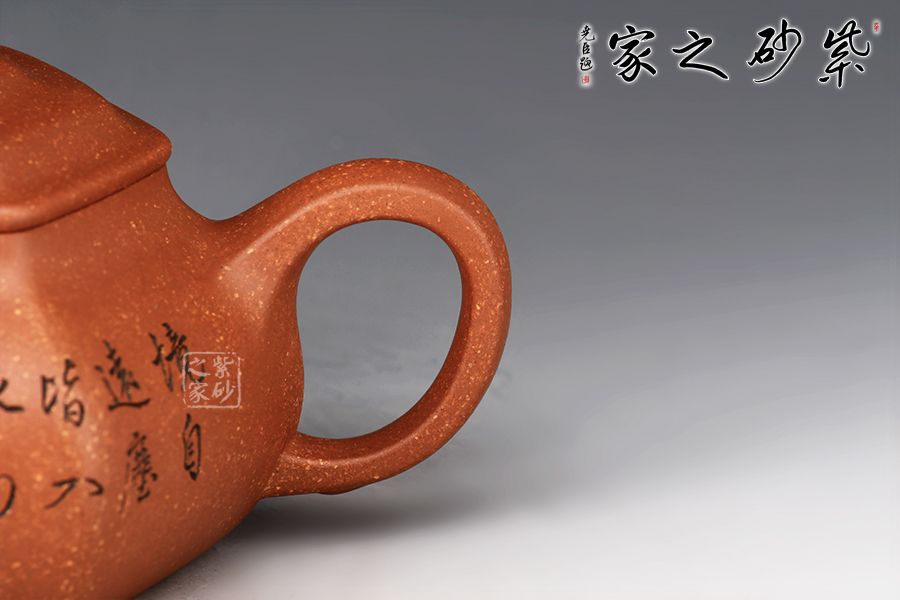 泥性:原礦因含緞泥、紅泥、紫泥等諸多共生礦,陶之后,于深沉之“橙紅色”底上,滿佈五彩斑斕的粗細、深淺之紅、黃星斑點。