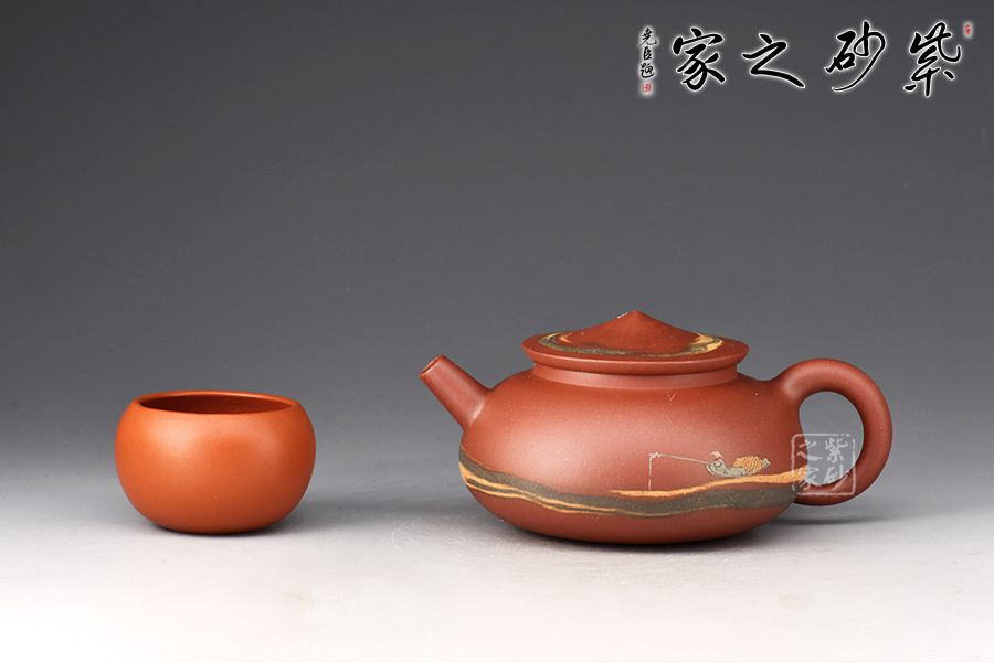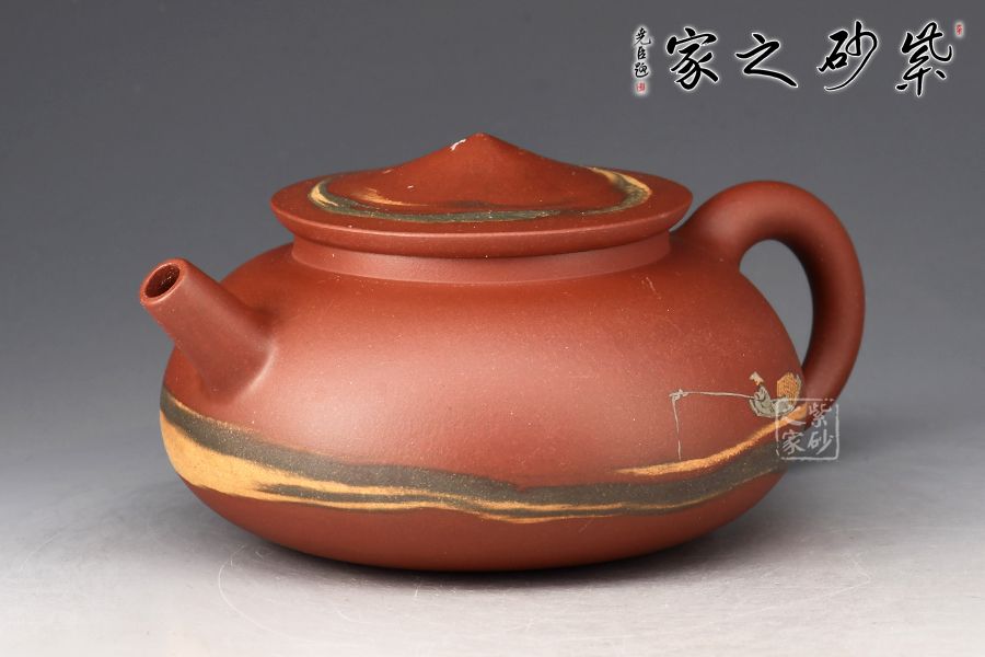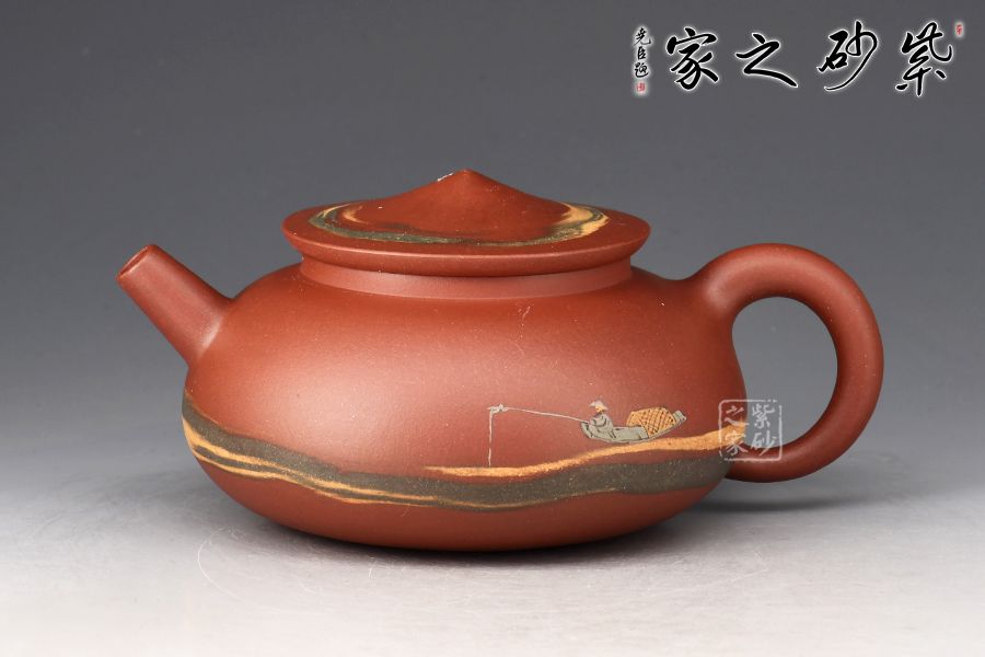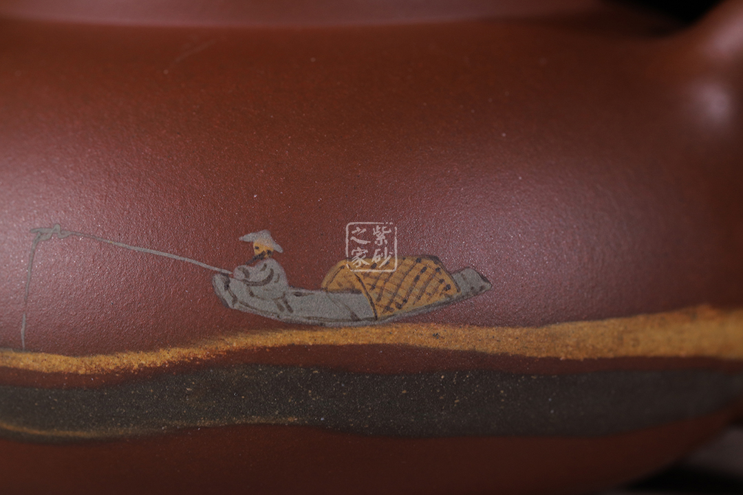 遠(yuǎn)觀此壺,猶如一漁翁魚,垂釣江面。
