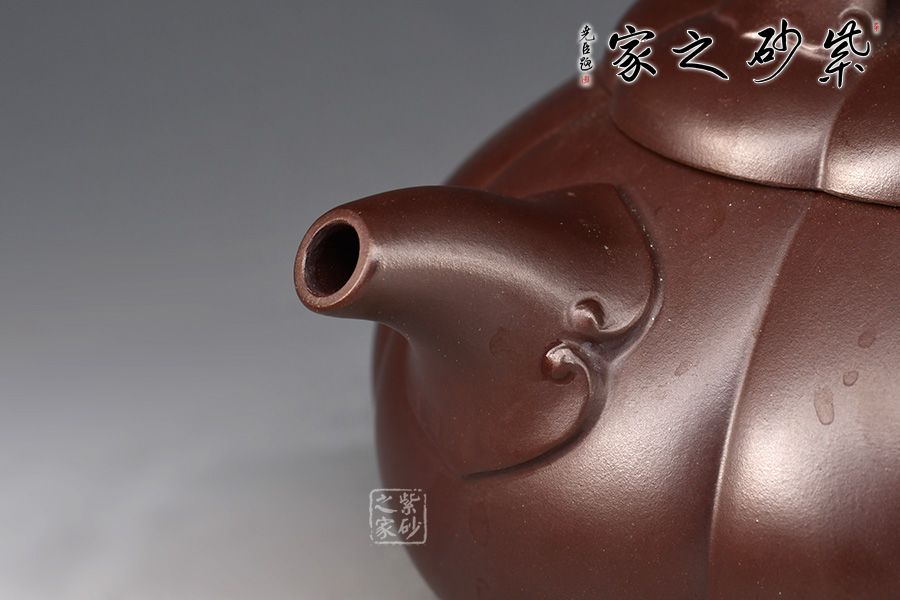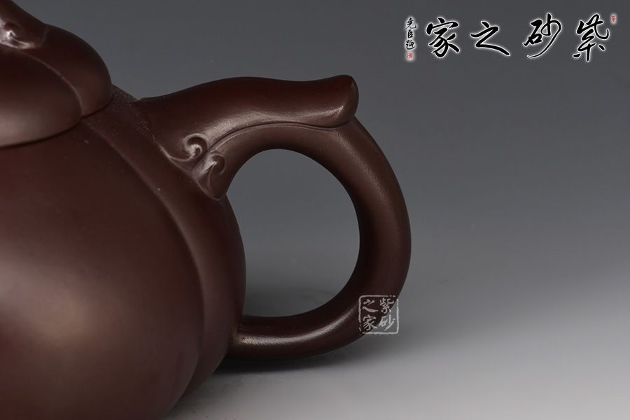 此壺為全手制作,運(yùn)用原礦紫泥作胎,泥色沉穩(wěn),古味十足。壺身均勻分布筋紋線,線條流暢自然且富于變化;嘴把鈕裝飾如意紋,寓意吉祥,推薦收藏!