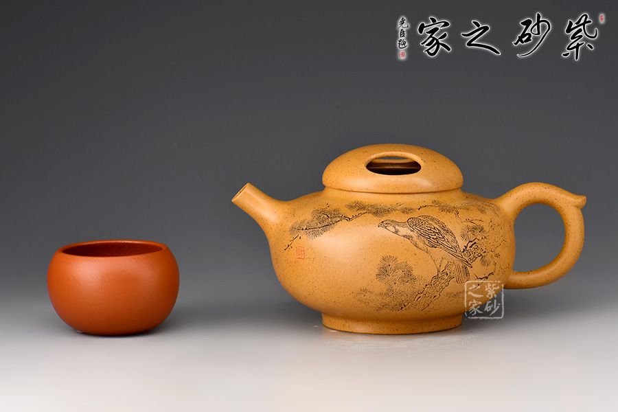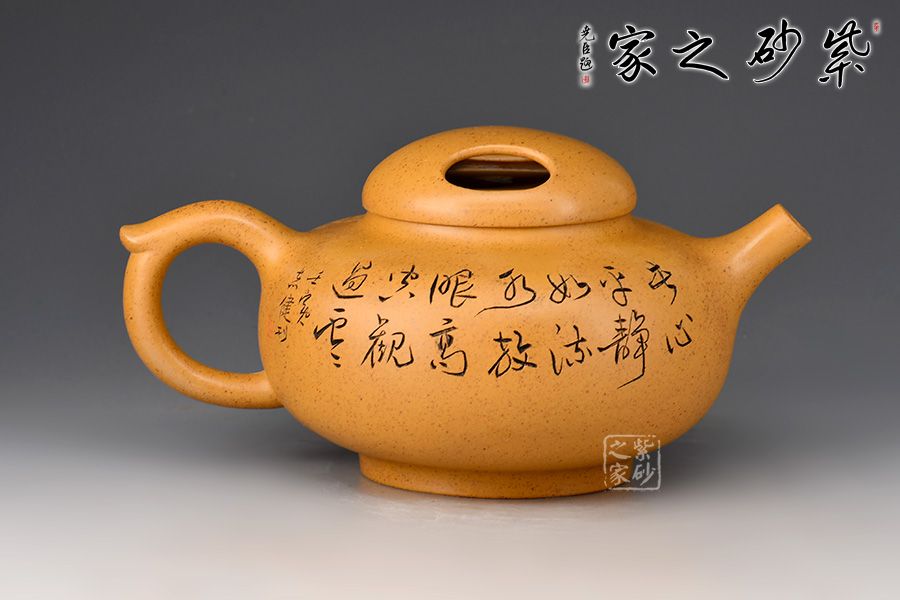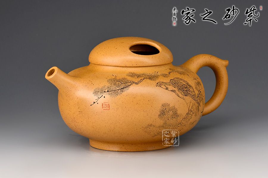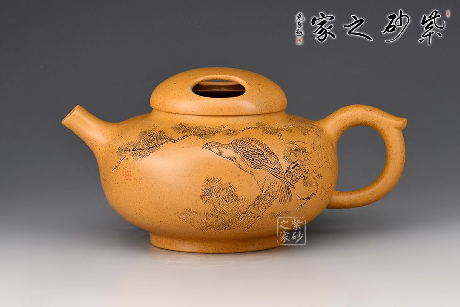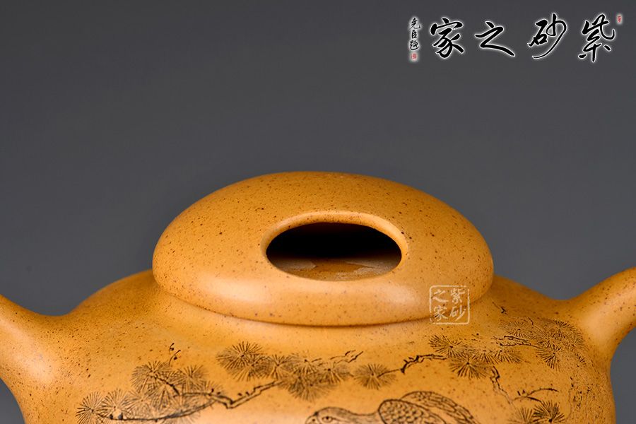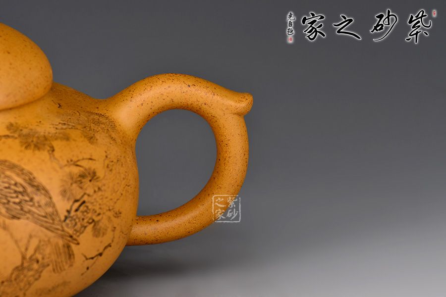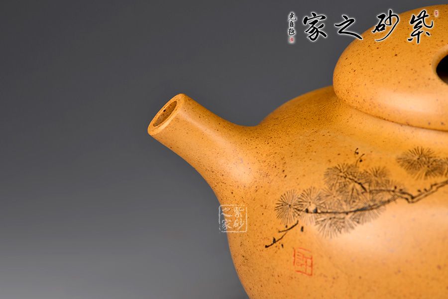 壺身圓潤飽滿,線條流暢。直嘴,出水流暢,飛把粗細(xì)有致,拿捏方便。壓蓋,與壺口緊密結(jié)合,口蓋整體平整光滑,外形流暢。壺鈕制作別出心裁,采用了牛鼻孔式的鏤空結(jié)構(gòu),生動(dòng)與趣味完美結(jié)合。壺身加底,挺拔壺身。壺身之上的花鳥詩詞刻繪,讓您品茗間更添文人雅致。