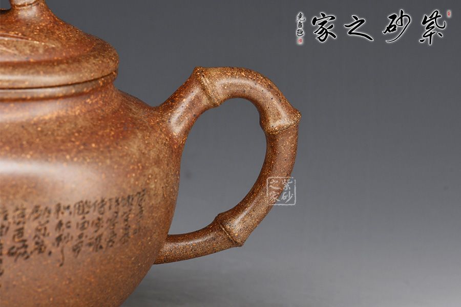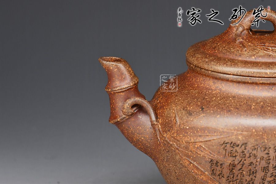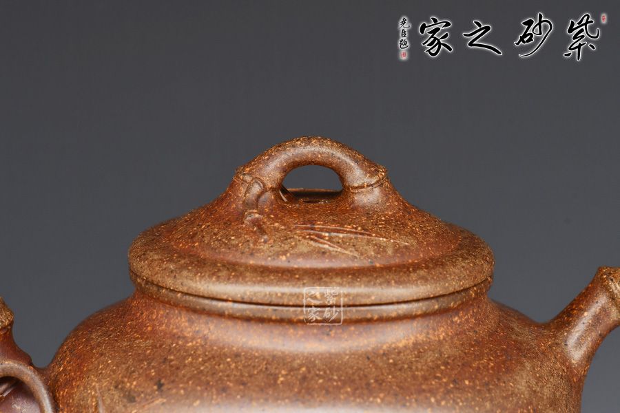 赤龍煥彩,采用家藏大紅袍朱泥底料結(jié)合極其珍貴黃金段料研磨成顆粒,請(qǐng)教原紫砂廠練泥車間老師傅,進(jìn)行多次配比實(shí)驗(yàn),燒成后黃金段顆粒自然排列有如龍之金鱗,融合的大紅袍朱泥特性,故名赤龍煥彩。