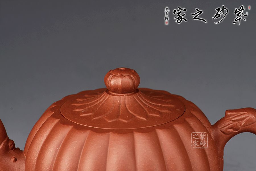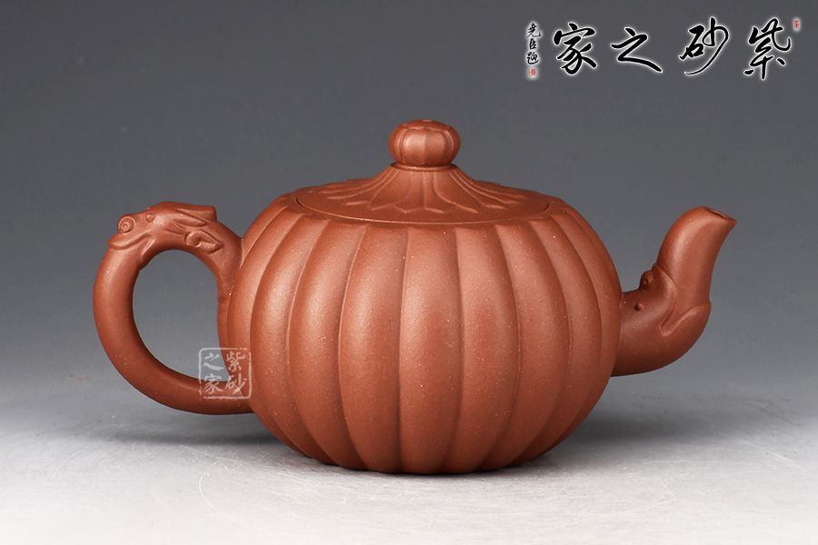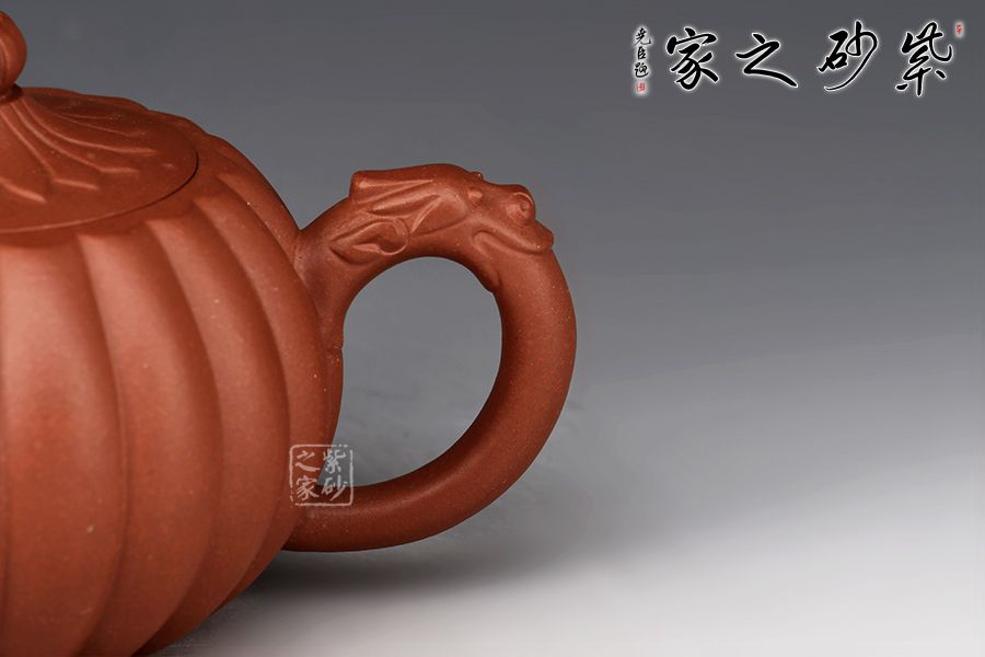 龍菱壺,是一款十分經(jīng)典的筋紋器,器型整體簡(jiǎn)約大氣,飽滿圓潤,古雅大氣;此壺精選原礦紫泥為胎,全手工精制而成。壺身飽滿,顯得更為端莊挺括;壺肩以下以菱花筋紋包圍四周,菱花均勻飽滿,工藝極為細(xì)膩,形成凹凸有致的曲面,整款壺顯得變化豐富,富有情趣;明接二彎流飾以龍首和壺把上的龍首裝飾相呼應(yīng),十分有勁,出水成股。