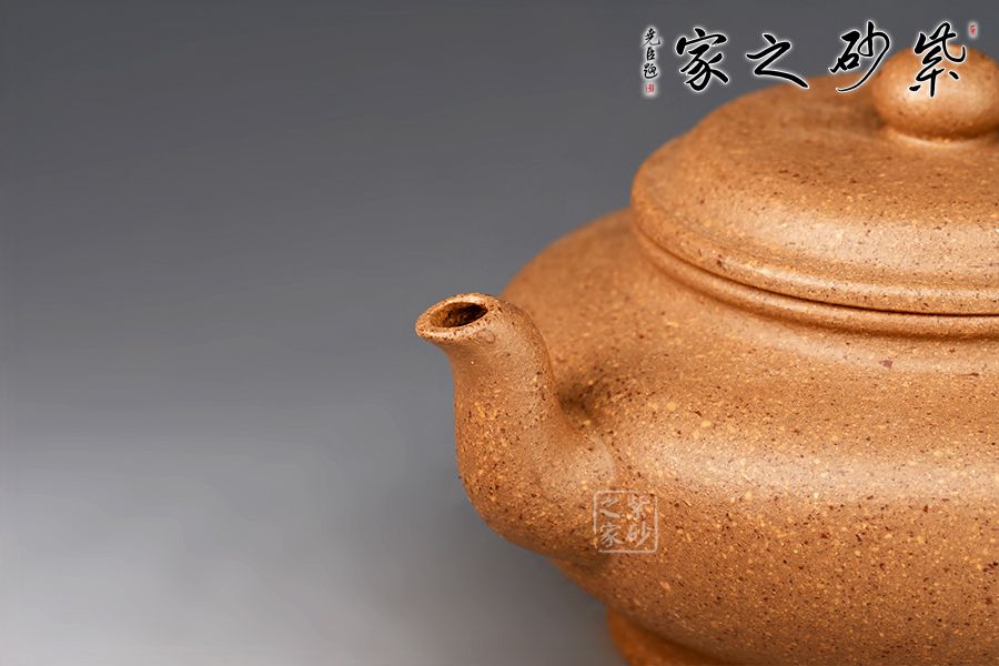 此壺承襲景舟虛扁壺形,端莊大氣,壺腹圓潤,給人以有容乃大的大家風(fēng)范和氣度。流光通轉(zhuǎn),潤澤養(yǎng)目,壺身沉穩(wěn)靈秀,觸之綿柔如脂。