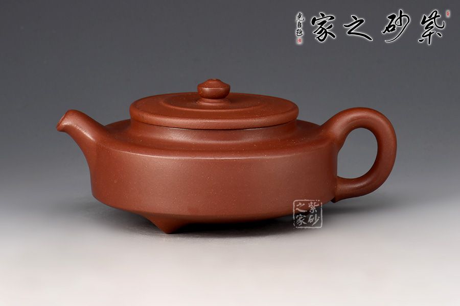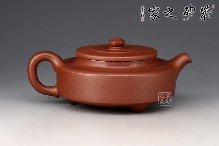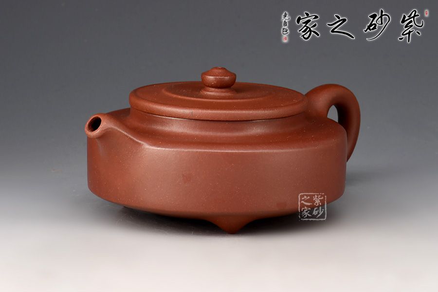 壺品古典高雅,坡頸平口,平蓋扁鈕,三小足增添輕盈之感,泥質(zhì)溫潤(rùn)細(xì)膩,工藝精到。