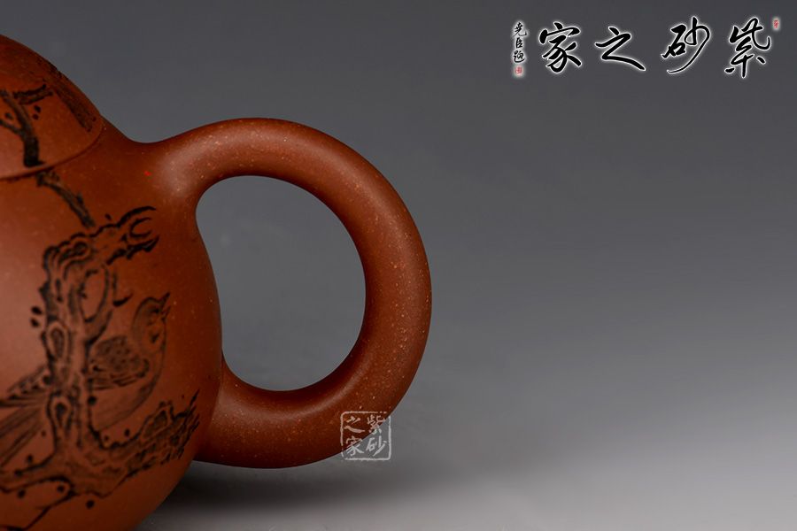 錐流微胥,若櫻桃小口,婉約嬌俏;倒把行云流水,玲瓏嬌秀。壺身之上的詩詞景色刻繪,品茗間更添文人雅致。整器柔美怡人,珠圓玉潤,彰顯凝練簡潔的力蘊與溫和可人的壺韻。