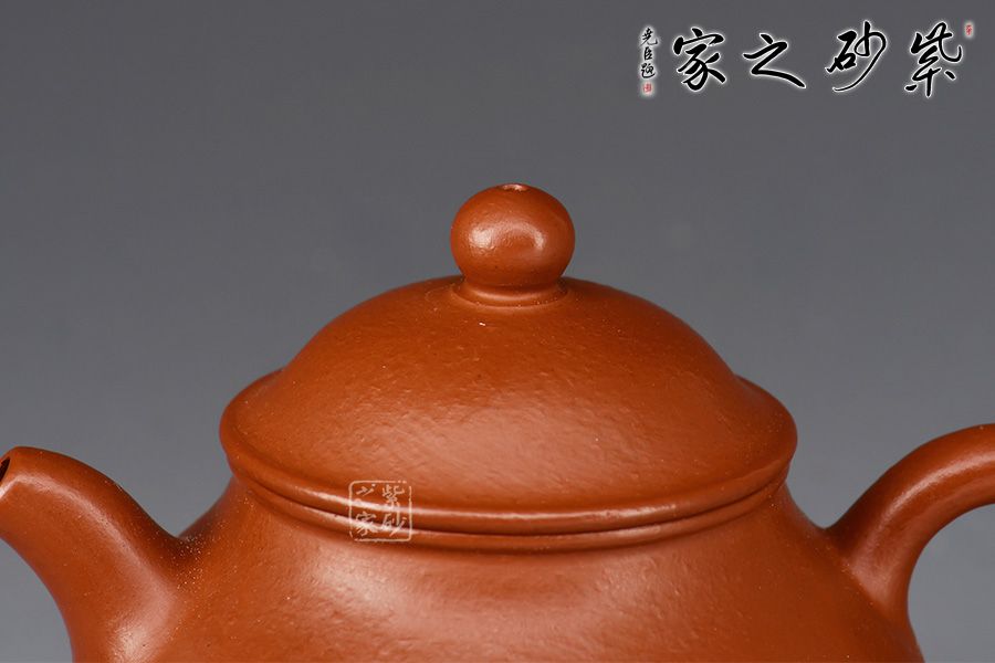 口蓋子母線天壓地,壺蓋中央一粒圓珠壺鈕,工藝細(xì)致,整體光素簡(jiǎn)潔,憨厚質(zhì)樸,有返璞歸真之美感。