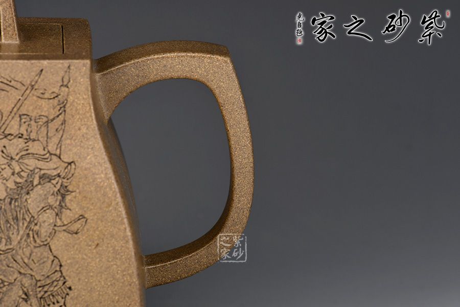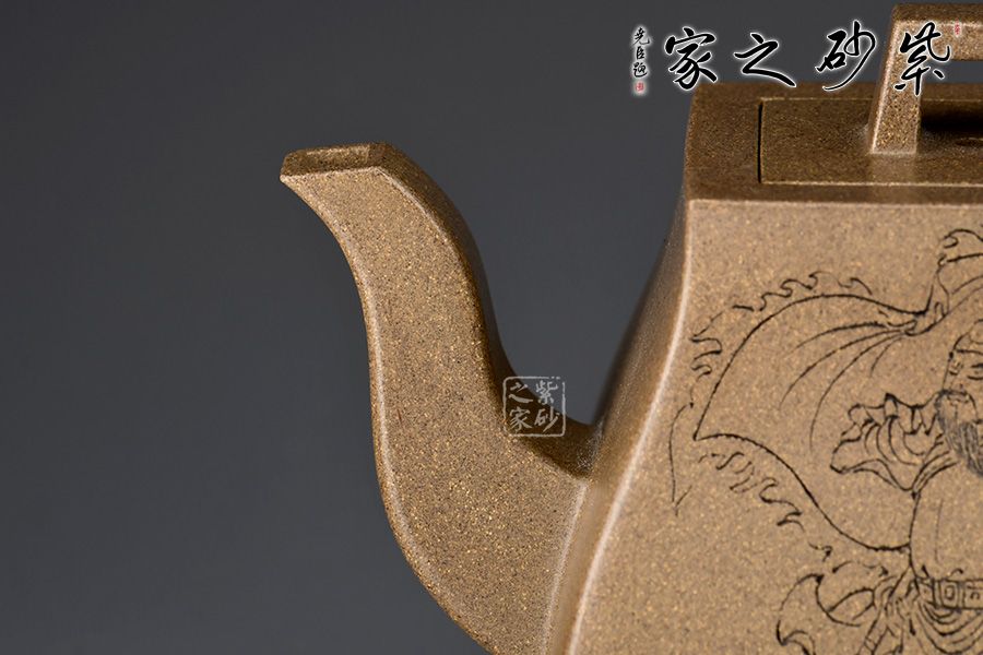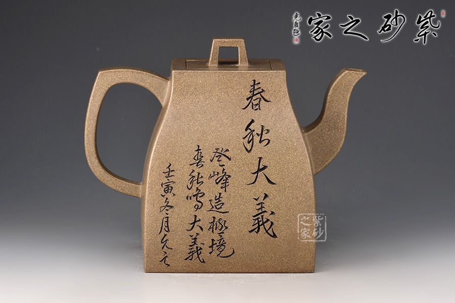 春秋大義壺精選蟹殼青,老師全手工精制而成,古樸、素雅、恬靜,使用日久益現(xiàn)沉蘊(yùn)古老氣息,茶香撲鼻。壺身上小下大,線條轉(zhuǎn)變自然,壺型修長穩(wěn)重。壺鈕呈一梯形,與壺型正相符,一大一小,相互對(duì)應(yīng)。壺嘴三彎,彎中有方,正是曲中有直,大方得體。壺把線條有直有曲,拿捏平穩(wěn)又不失趣味。用之品茗,別有君子淡然之感。