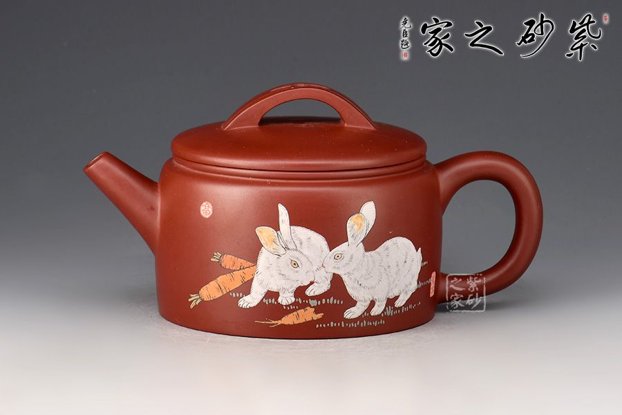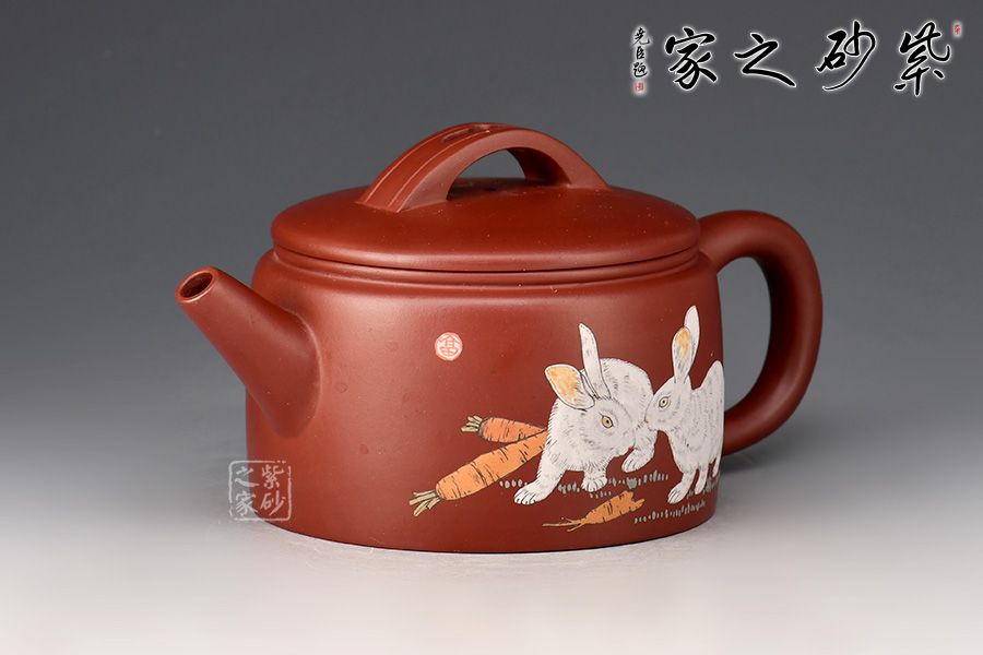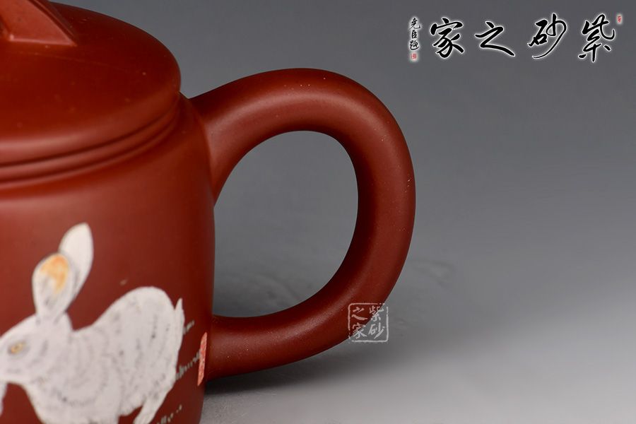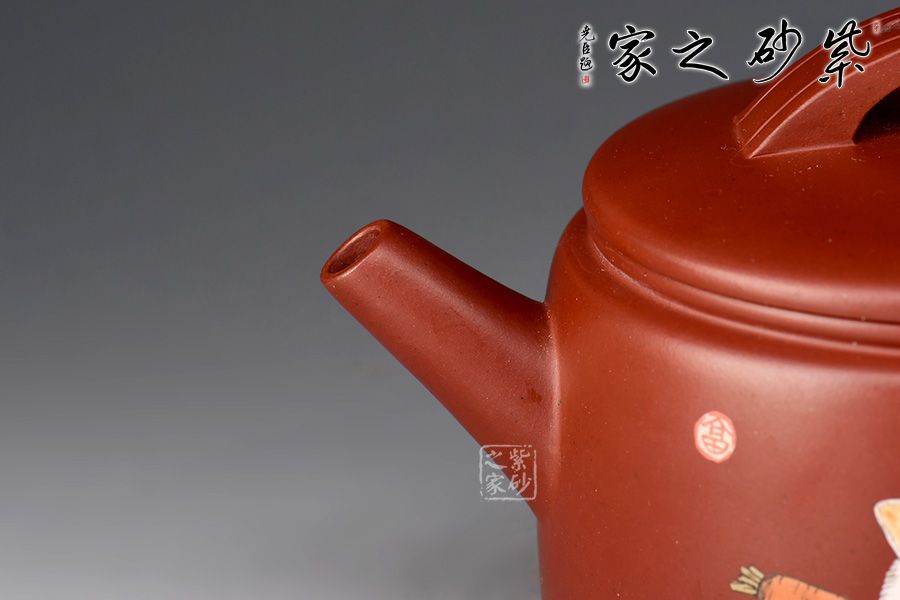 此壺以龍血砂作胎,泥色亮麗,好泡養(yǎng)。以簡(jiǎn)潔的線條勾勒出淳樸凝重的形體,壺身呈矮圓柱形,渾厚沉穩(wěn),大口蓋壓口,平整有力,投茶十分便利。橋鈕、直嘴、耳把剛?cè)岵?jì),比例和諧,出水爽利。整器端莊敦實(shí),好料好工,是一把超性價(jià)比的殺茶利器。