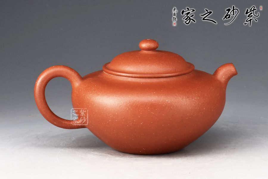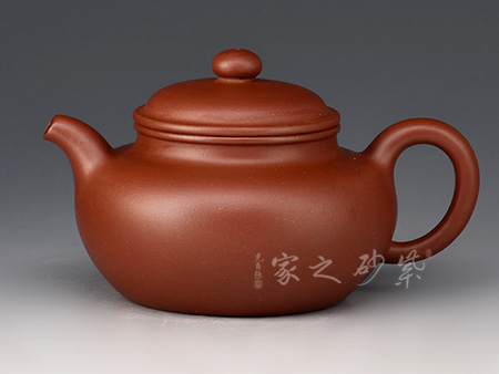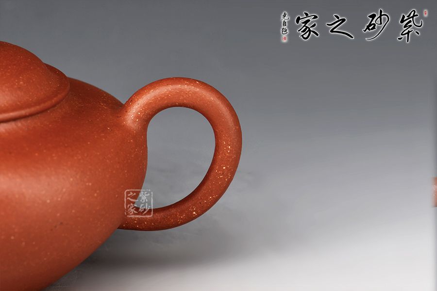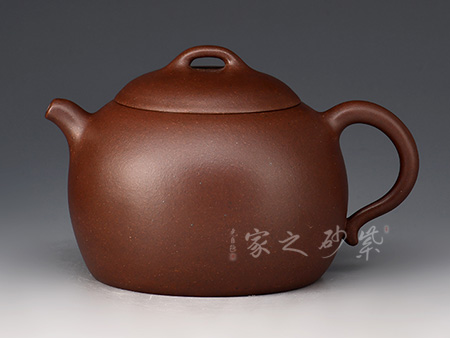 壺身圓潤飽滿,線條柔潤,流、把、蓋、肩、腹、底與壺體整體比例協(xié)調(diào),點(diǎn)、線、面搭配流暢。壓蓋設(shè)計(jì),氣密性好,蓋上圓珠鈕與壺身相應(yīng),靈巧可愛,拿捏舒適。家藏降坡泥制作而成,油性足,透氣性佳,泡養(yǎng)之后油潤可鑒,令人愛不釋手。
