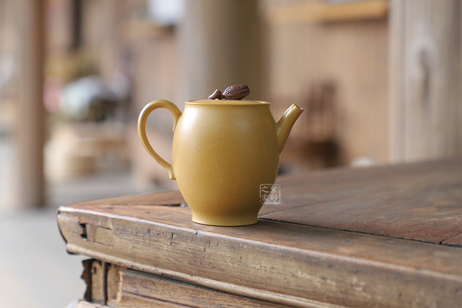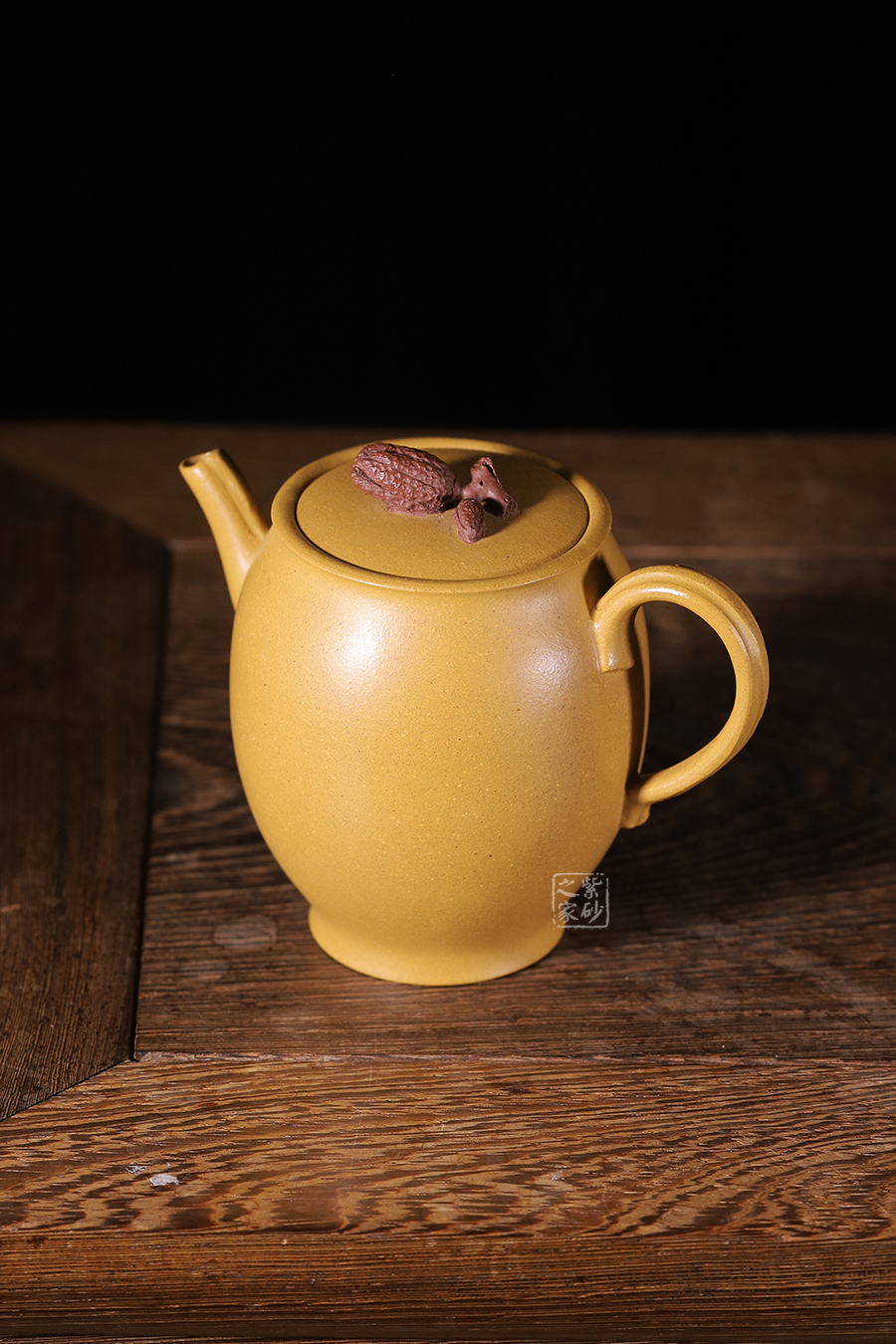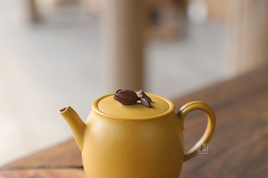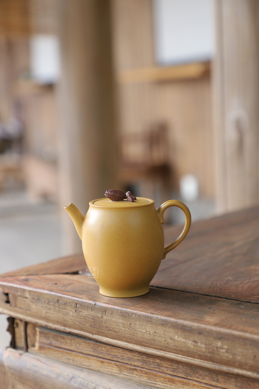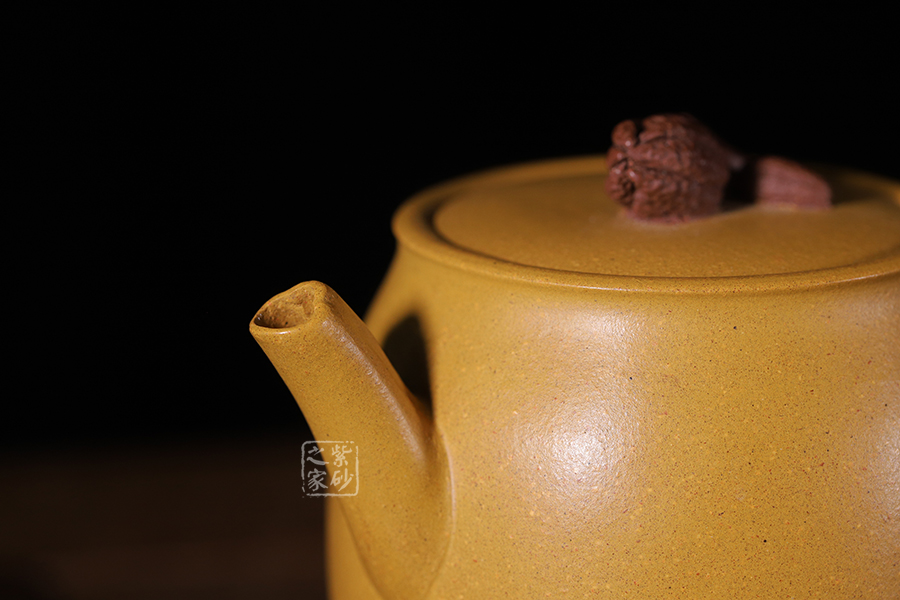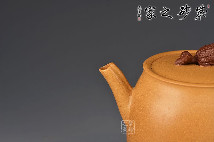 泥性:感甜嫩綿密,質(zhì)堅(jiān)而溫潤(rùn),呈近田黃色調(diào),為江蘇宜興趙莊山系朱泥礦~黃石黃之共生礦,經(jīng)挑揀練製而成,因含鐵量只達(dá)6%左右,致陶之后呈“金田黃色”。