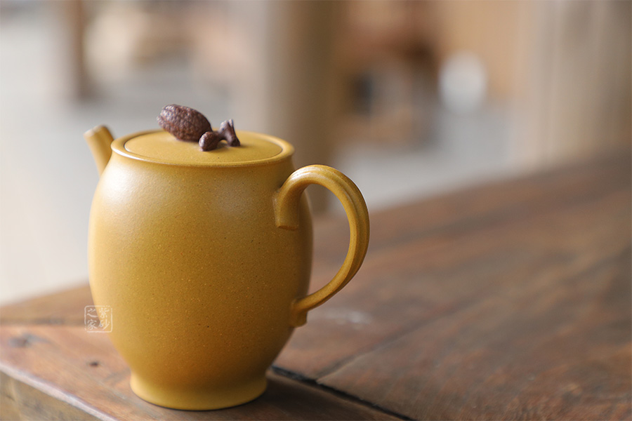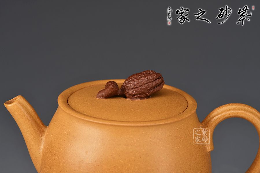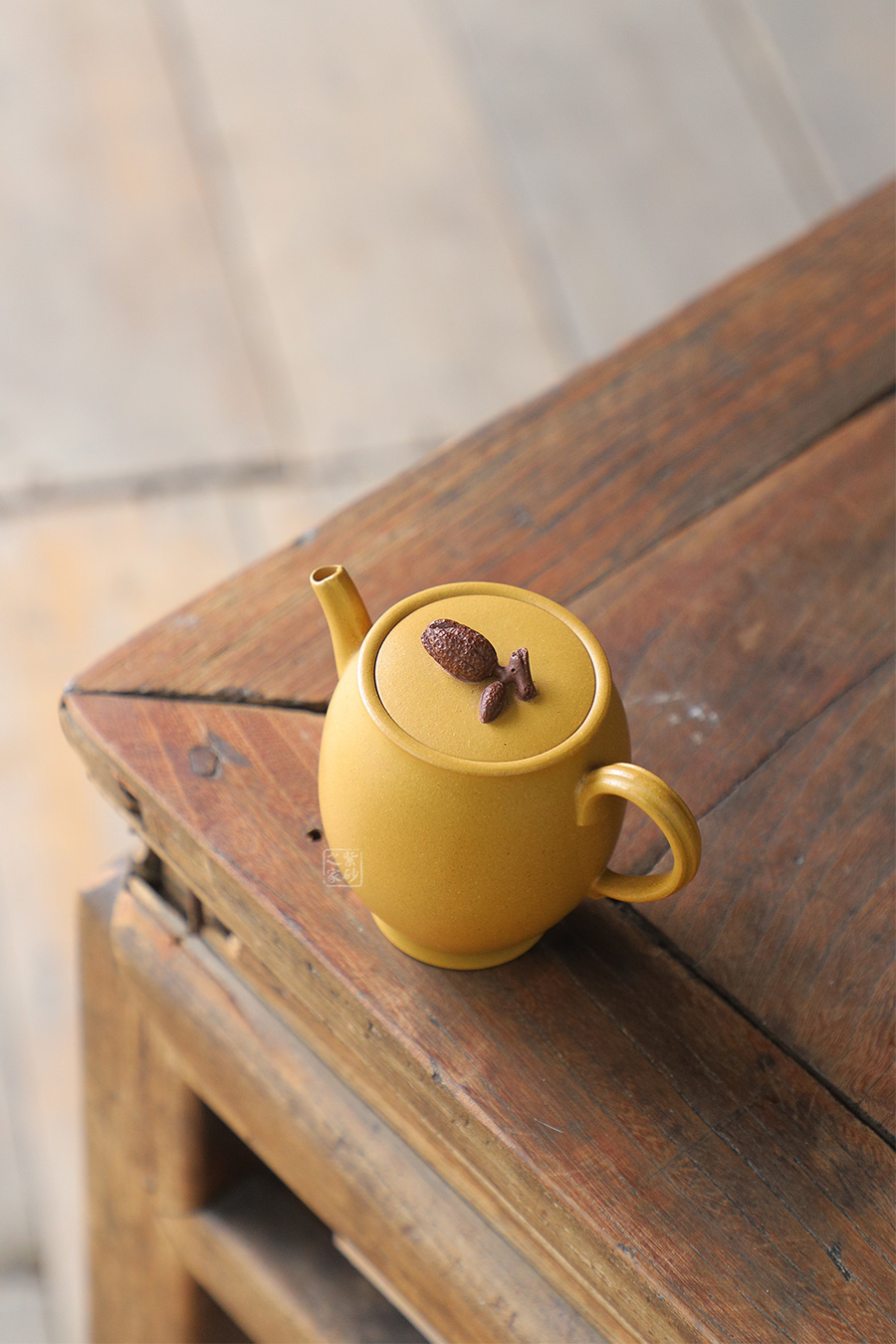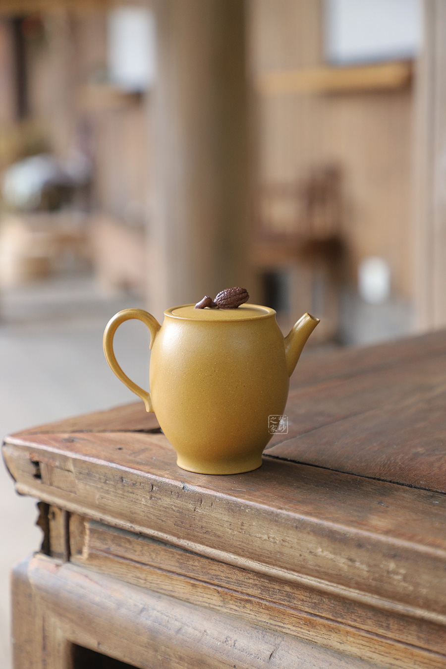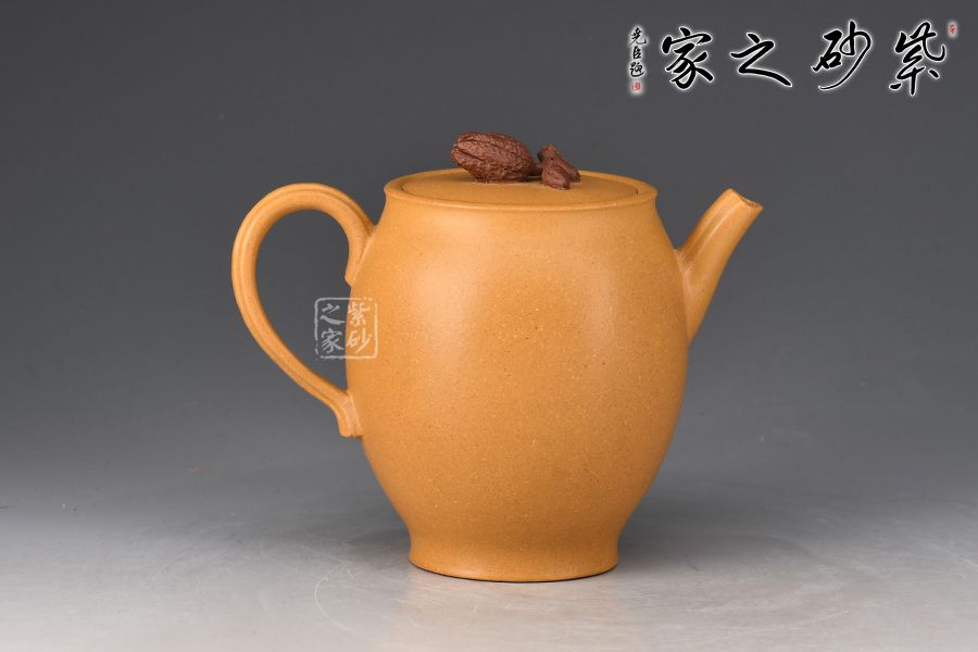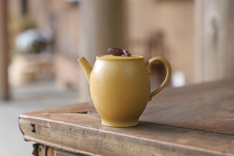 泥性:感甜嫩綿密,質(zhì)堅(jiān)而溫潤(rùn),呈近田黃色調(diào),為江蘇宜興趙莊山系朱泥礦~黃石黃之共生礦,經(jīng)挑揀練製而成,因含鐵量只達(dá)6%左右,致陶之后呈“金田黃色”。