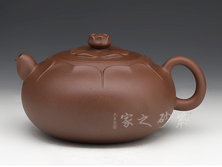 此壺取自平蓋蓮子壺,又有自己的風(fēng)格,寶珠鈕,彎流,耳把,