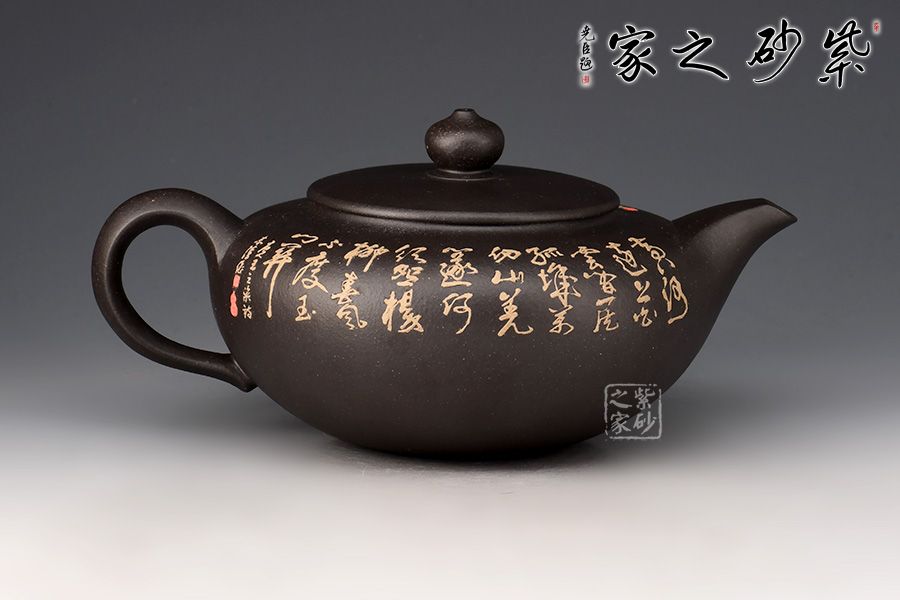 此壺壺身飽滿,線面挺括,平蓋壓口,簡潔爽快;