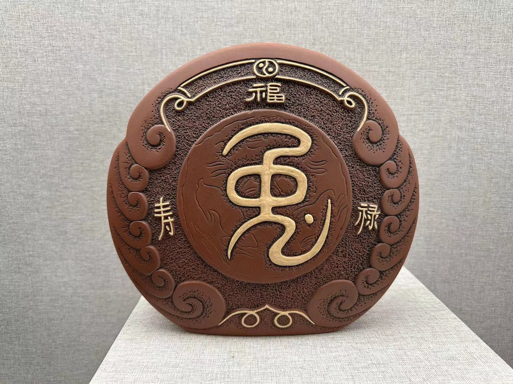 特點:泥色成熟穩(wěn)重、端莊肅穆,作品大小皆宜,呈棕紫色調(diào),能安定心靈,親和力甚佳。