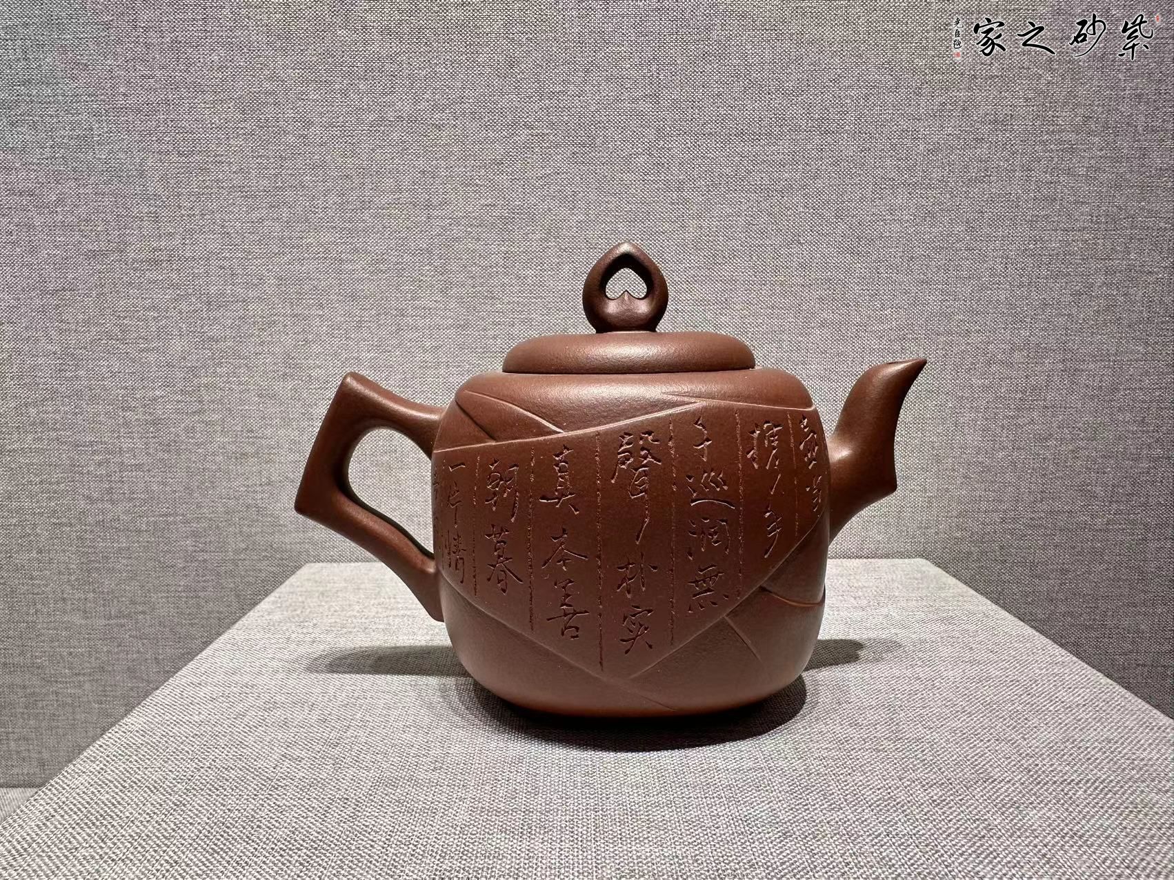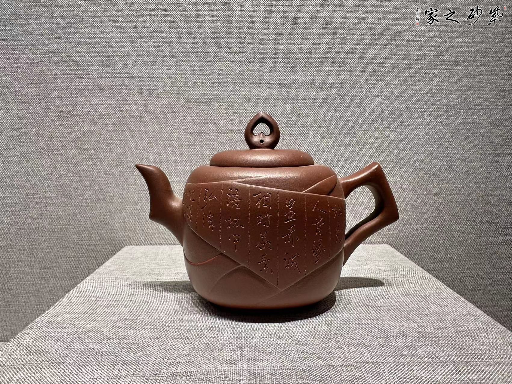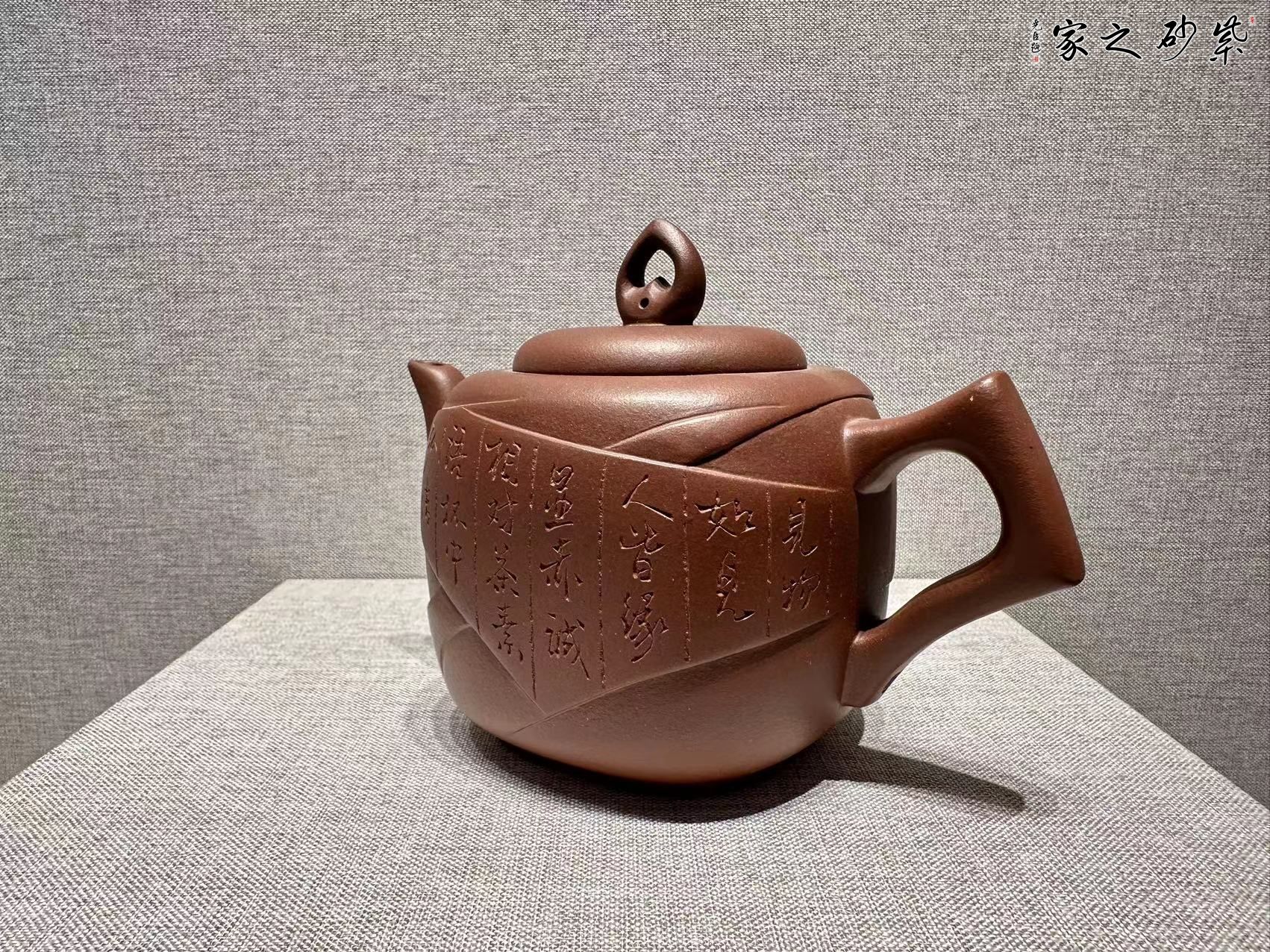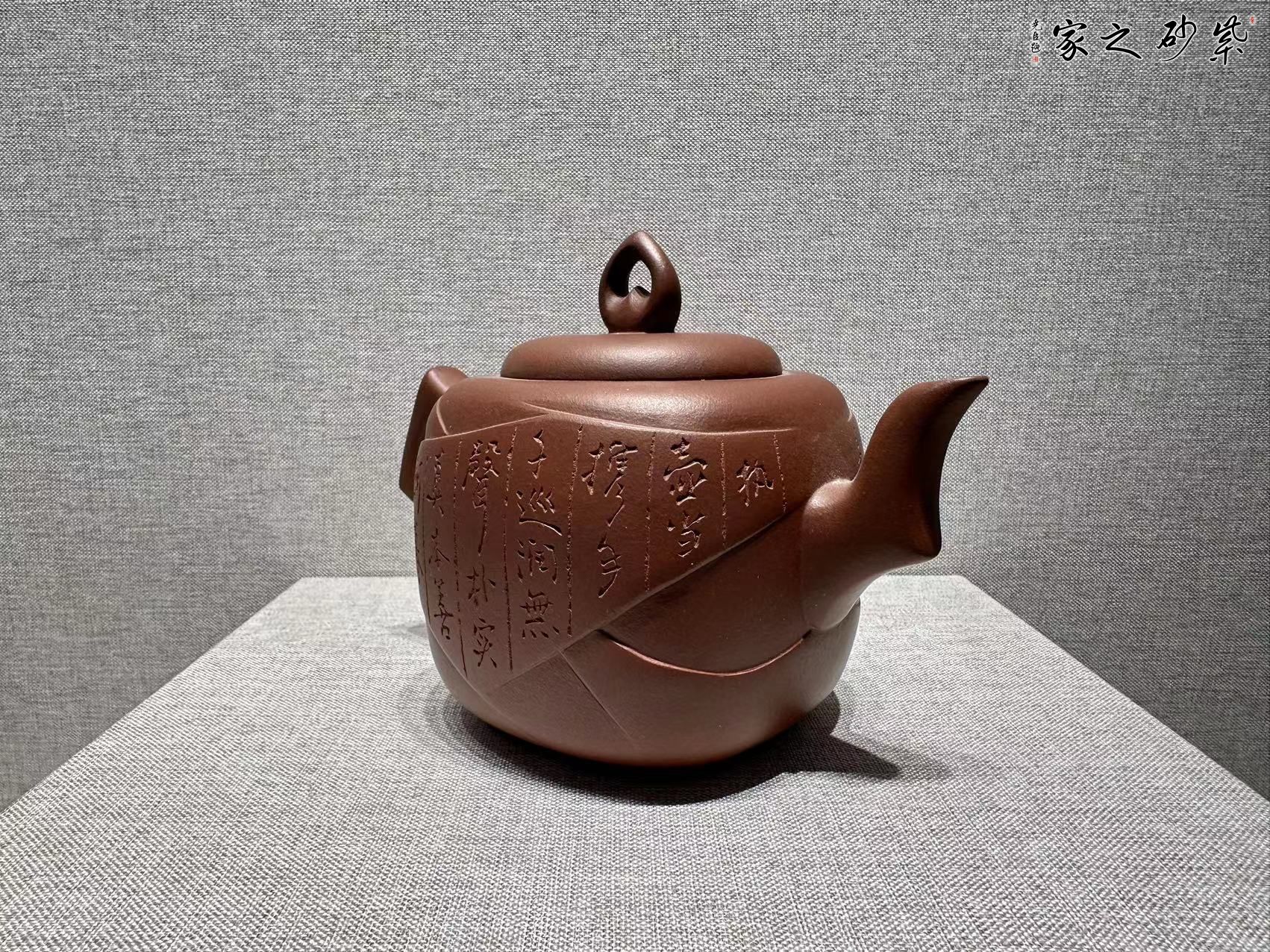 該壺造型設(shè)計以傳統(tǒng)為理念,形體采用正方圓角處理,喻做人做事既能方正又要不死板,既要求圓事又要敢于擔當,裝飾用包袱包裹浮雕形式處理,紋理忽顯忽隱,喻做人做既要有棱角又要少鋒芒,既要緊密又要有松弛,壺鈕心形,喻做人做事要用心,心底要透明,嘴把用梭角的手法處理,與壺身形成對比,喻事要用哲學(xué)對立與統(tǒng)一的關(guān)系處理,作品整體,大度穩(wěn)重,圓棱兼容,從矛盾中領(lǐng)悟人生,把握機遇,以沖突中放正位置,求同存異。愿與認同