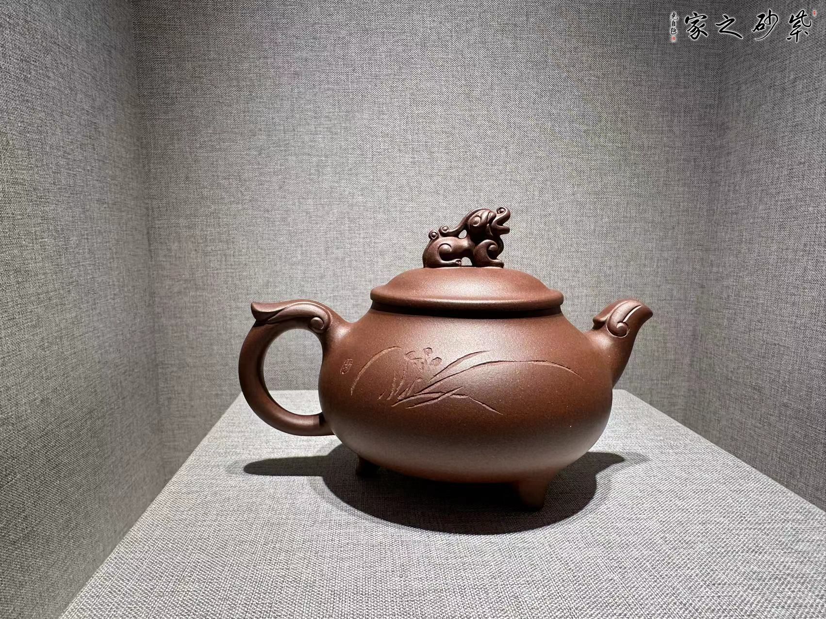 該壺造型設計以傳統(tǒng)為理念,并將龍鳳文化鼎文化與壺藝相結(jié)合,形體鼎立穩(wěn)重,端莊遒勁,抽象流線形鳳頭壺咀自然舒展,與壺體弧線協(xié)調(diào),與鼎足呼應,抽象龍形把與整體搭配,氣韻和諧,鈕為吉祥物貔貅,整體效果大氣端莊,氣韻流暢,甜美祥和,俊秀靈動。 天地格物各自理,殊途結(jié)伴兩相依, 龍騰鳳舞同得道,和協(xié)鼎助長豪氣